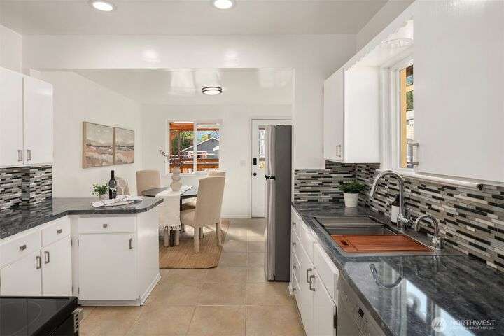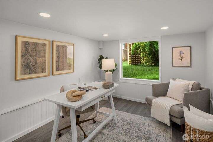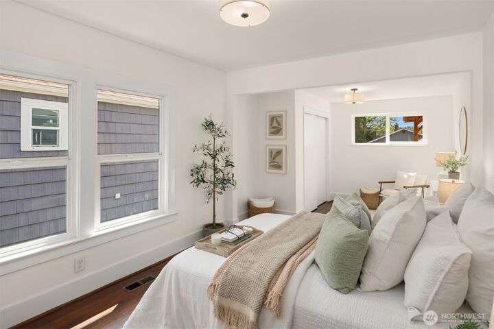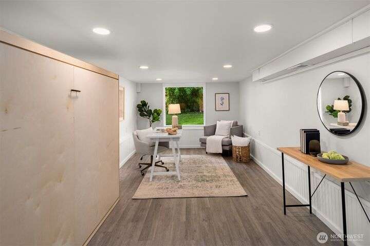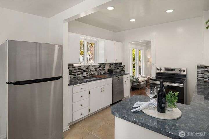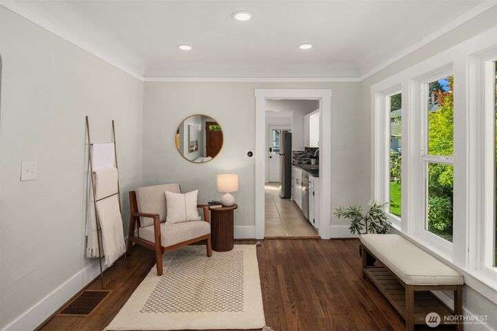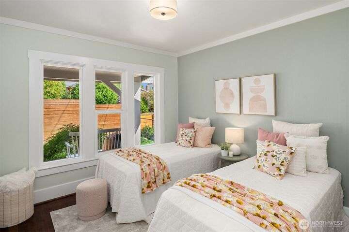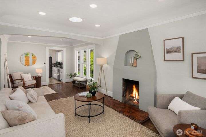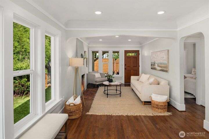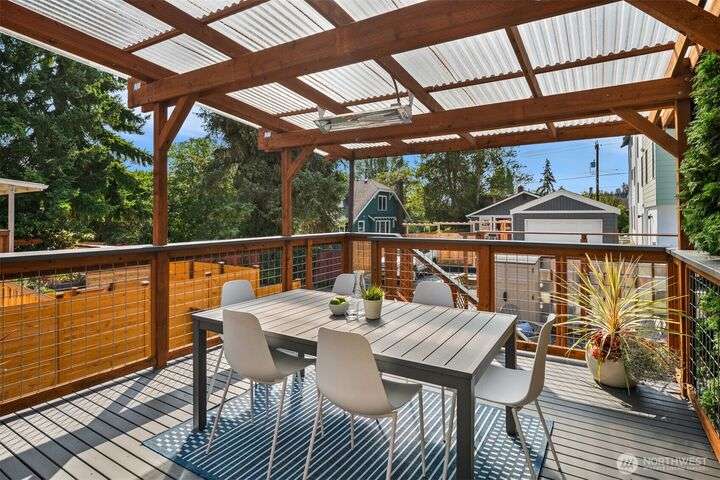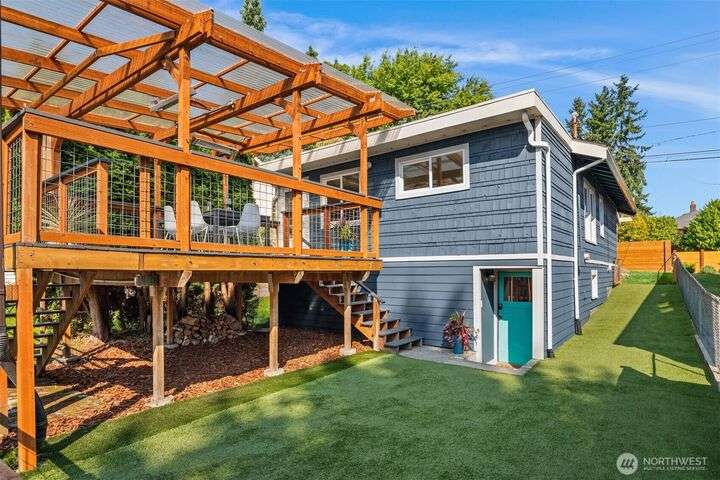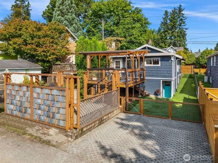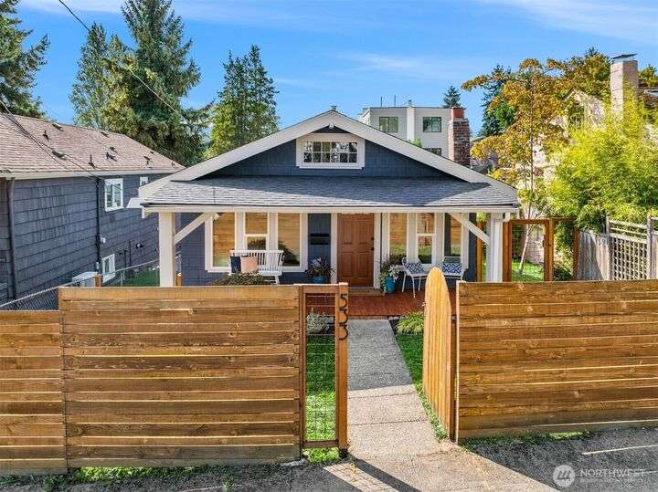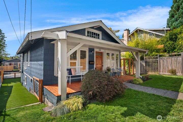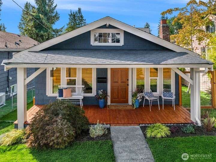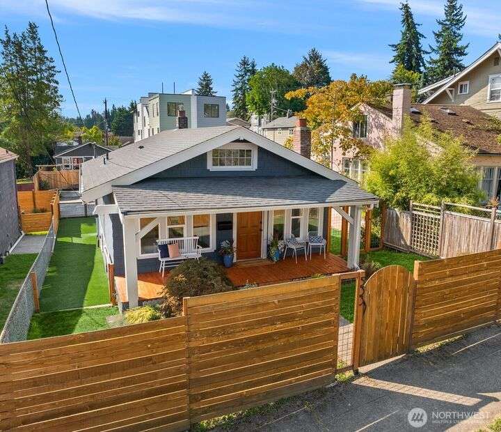 Nestled smack dab between beloved Green Lake and all the goodness of “The Ridge”, this sweet abode is literally w/in blocks of everything you need for the idyllic urban lifestyle. The inviting front porch beckons you in where you’ll find one-level everyday living w/ a wood-burning fireplace & eat-in kitchen. The partially finished basement offers a 2nd living space (office, gym, guest rm?) w/ built-in Murphy bed, ½ bath, laundry & a boat load of storage. A covered back deck w/ heaters means year-round al fresco dining rain or shine. Gather friends round the firepit while Fido enjoys mud-free play on the turf. Alley parking, EV charger, updated lighting, new water heater, fresh paint. Simply pack your bags & come live your best Phinney life!