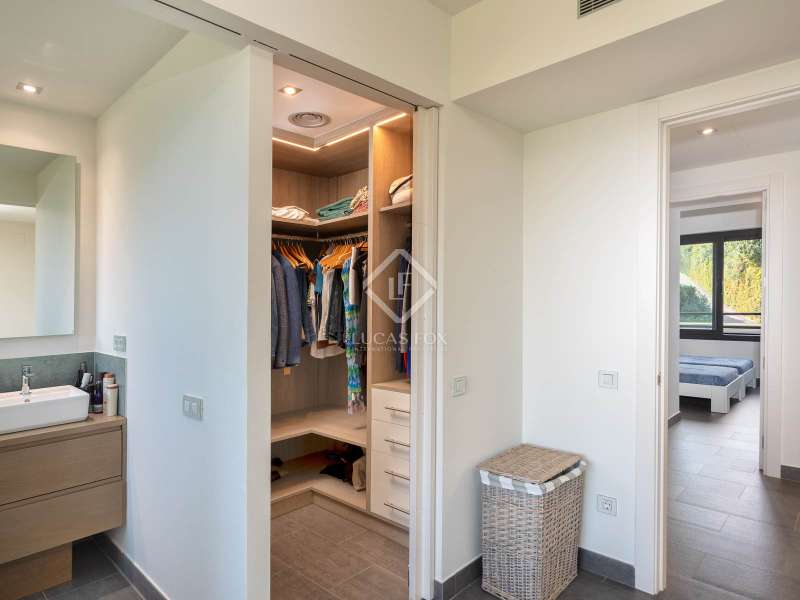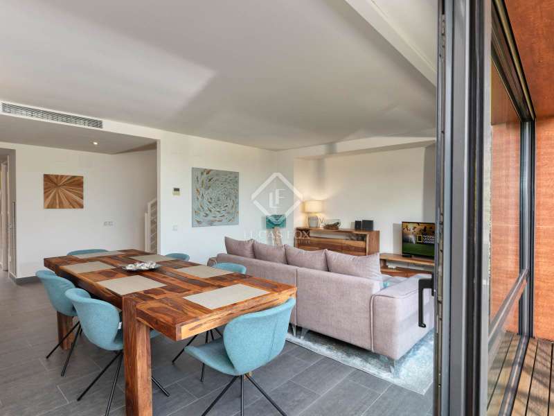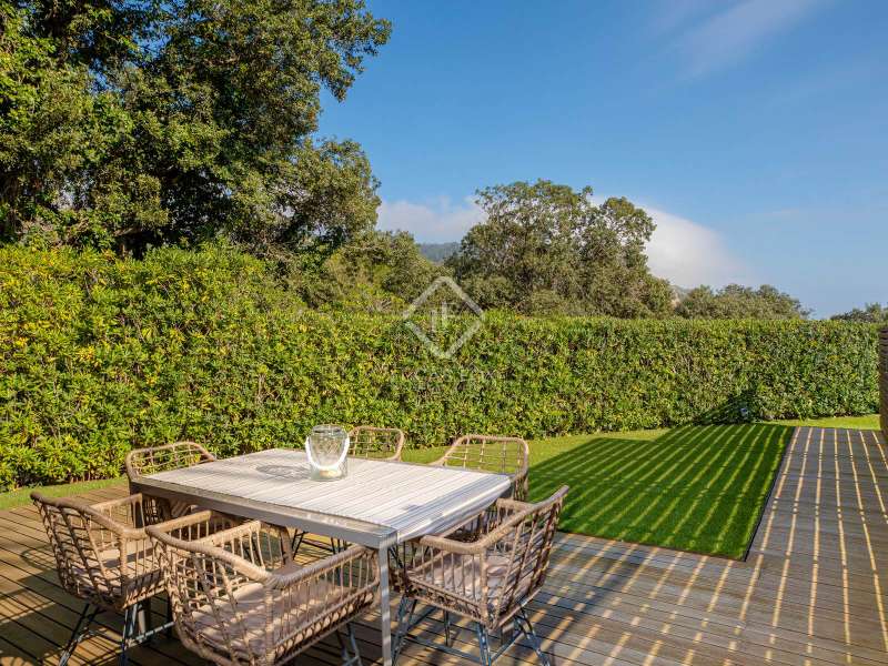 This semi-detached, bright home is nestled within an exclusive gated community of only 4 residences. Its east-facing orientation provides stunning sea views and abundant natural sunlight throughout the year. Located less than 10-minute walk from the picturesque Aiguablava cove and the charming Fornells harbour, and about 3 kilometres from Begur's town centre, this property boasts an unbeatable location. Originally built in 2008, the property underwent a quality upgrade of its interior finishes, kitchen, and bathrooms just four years ago. It is in excellent condition and comes with an active tourist licence, making it a fantastic investment opportunity as well as an easy-to-maintain, move-in-ready home. Perfect as a primary residence or holiday getaway. The main floor features a bright, open-concept design. Upon entry, a hallway leads to a spacious living-dining area, thoughtfully designed for both comfort and style. Large windows flood the room with natural light and open onto a private terrace, barbecue area and garden, ideal for outdoor dining and relaxation. The modern kitchen is fully equipped with top-quality appliances, perfect for those who love to cook. A guest bathroom is conveniently located on this level. On the upper floor, we find the expansive main bedroom, which includes an en-suite bathroom, a walk-in wardrobe, and additional built-in wardrobes. The room is filled with natural light and offers magnificent sea views, creating a peaceful retreat. This floor also hosts two additional double bedrooms with built-in wardrobes that share a stylish bathroom featuring both a bathtub and shower. The lower level hosts a fourth en-suite double bedroom, ideal for guests or a nanny. This floor also includes a spacious cinema/music space and an additional office area, perfect for working from home. From this level, you can access a large courtyard featuring a decked chill-out area. The private terrace and garden on the main floor offer direct access to the communal facilities, which include a saltwater swimming pool with an expansive terrace surrounded by landscaped gardens with spectacular sea views. The property also has two private parking spaces and a large storage room. The gated community ensures privacy, security, and tranquility, with the added benefit of a 24/7 concierge on-site service that includes pool and garden maintenance. The home is equipped with a fully integrated climate control system in every room, a water softener, a purified drinking water system, and high-speed fiber-optic internet. Please contact us for further information about this property.