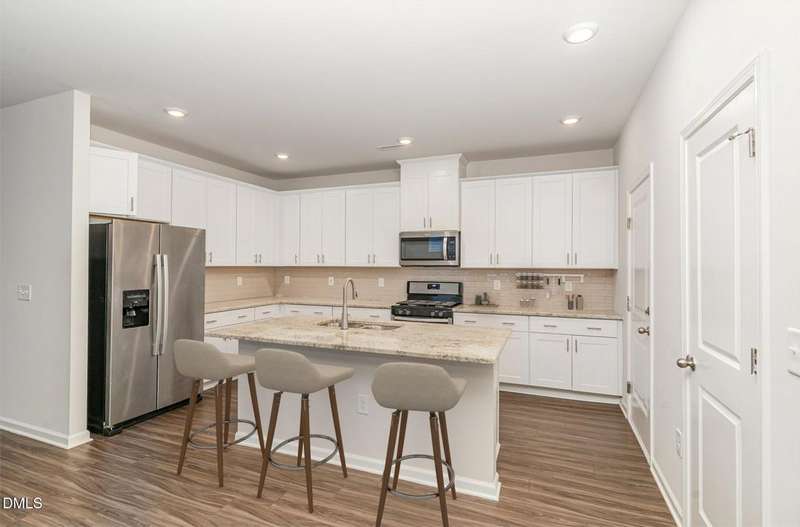 Welcome to this stunning 4-bedroom, 3-full-bath single family home located in the desirable Brighton Station community of Durham. The main level features wood-look flooring, a spacious living room that opens to a modern kitchen with white cabinetry, granite countertops, a large center island, tile backsplash, stainless steel appliances, including refrigerator and a walk-in pantry.The dining area flows seamlessly into the spacious living space, leading to a covered patio and private backyard - perfect for entertaining or relaxing. Upstairs, you'll find three additional bedrooms, including a primary suite with a walk-in shower, double vanity, and large walk-in closet.Located just minutes from Downtown Durham, Raleigh, I-540, U.S. 70, Freeway 147, RTP, Duke University, and shopping, this home offers both comfort and convenience.