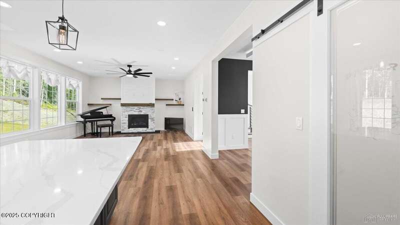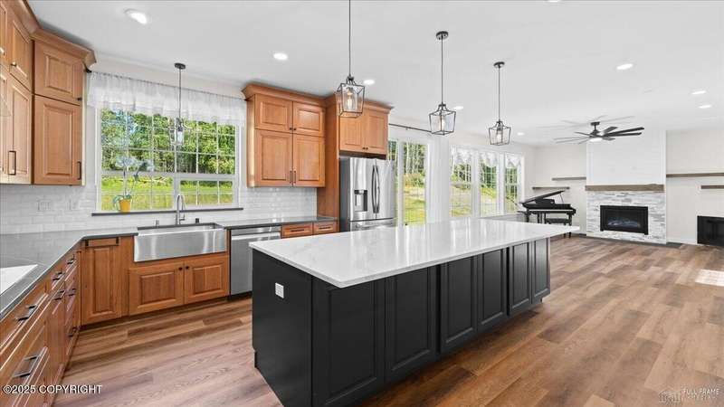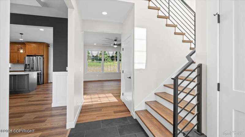 Packed with Upgrades + Priced Below Appraised Value! This isn't your average build—this is a designer-inspired, feature-packed dream home that delivers both form and function at an unbeatable price. With 4 bedrooms, 3 bathrooms, a dedicated office, bonus room, and 3-car garage, there's room for everyone and everything. Step into soaring 9' ceilings and an open-concept living space that's bathed in natural light from oversized windows. The heart of the home is a truly chef-worthy kitchen, quartz countertops, premium cabinetry, a stainless apron-front sink, large island, wine fridge, and a walk-in pantry with a charming barn door. Thoughtful custom touches include wainscoting, built-in entry bench, and well-designed shelving throughout. Upstairs, the luxurious primary suite feels like a private retreat, complete with its own deck overlooking breathtaking mountain views, a massive walk-through closet, and a spa-inspired bathroom with quartz counters, modern lighted mirror, lighted jacuzzi tub, and a tiled dual-head walk-in shower. The bonus room features custom built-ins with a stained wood countertop and opens to another covered deck, perfect for entertaining or relaxing. A full bath, two additional bedrooms, office, and spacious laundry room complete the upper level. And now for the extras (the ones you usually dream about after you move in): On-demand water heater HVAC system Reverse Osmosis System & UV Water Sterilization System Generator transfer switch Paved driveway with RV parking Gas line to the back deck for grilling Rain gutters and downspouts Exterior soffit lighting with sensors All of this, and it's priced below appraised value, rare chance to step into instant equity. This home is the total package: style, space, upgrades, and value. Come see why this one stands out from the crowd.