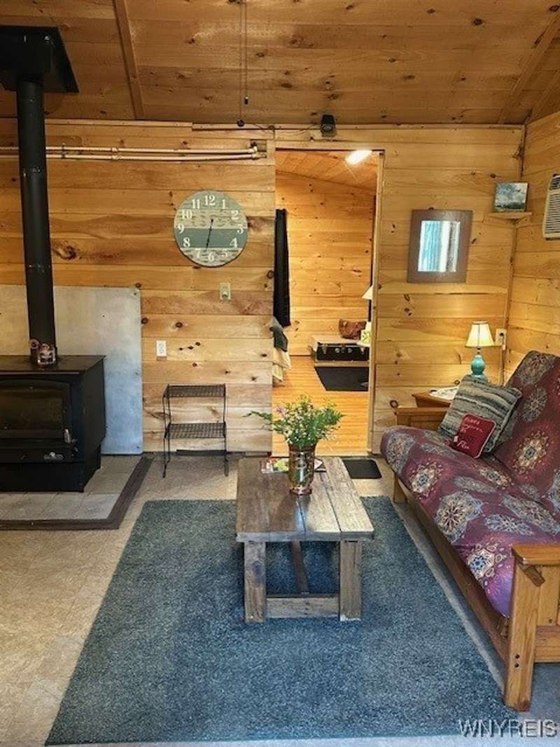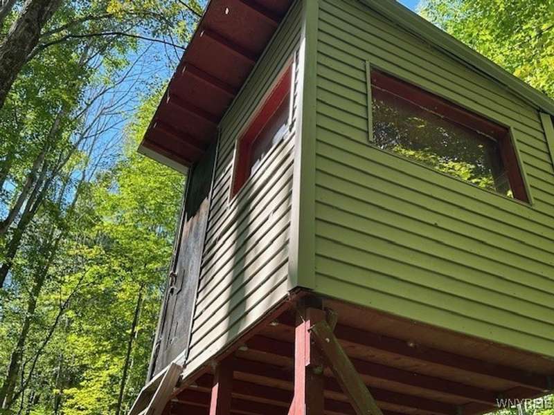 Nestled on 10 serene acres in the countryside, this charming seasonal cabin offers a peaceful escape surrounded by nature's finest. Built in 1992, the cabin features a sturdy metal roof, energy-efficient vinyl windows, and a welcoming front porch deck perfect for morning coffee or evening sunsets. Inside, you'll find the rustic comfort of a wood-burning stove and the convenience of a wall-mounted AC unit, with electricity and a spring-fed well providing modern essentials. The land itself is a haven for outdoor enthusiasts, with developed trails winding through the woods and leading to a tranquil pond stocked with bass and koi. Other features include a treestand and treehouse in the woods. Whether you're hiking, hunting, or relaxing this property delivers recreation and retreat in equal measure.