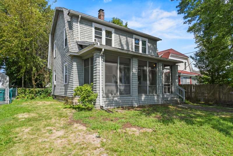 OFFER DEADLINE MONDAY 3PM. Attention investors, contractors and handy homeowners! This Springfield Colonial offers classic charm and strong potential for added value. The layout features a welcoming living room with a fireplace and built-in bookshelf, a dining room with built-ins, and a kitchen with pantry and gas stove. A three-season porch adds bonus space on the first floor. Upstairs you’ll find three generously sized bedrooms, all with hardwood floors, and a full bath. Outside, enjoy a fenced, level yard with plenty of off-street parking and a detached garage. Conveniently located with easy access to the highway, shopping, restaurants, and more. Sold AS IS, this home is ready for your vision and finishing touches.