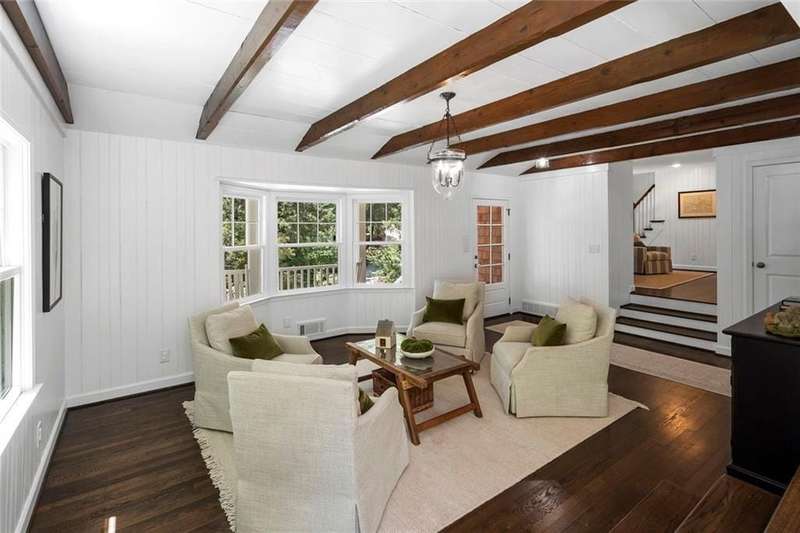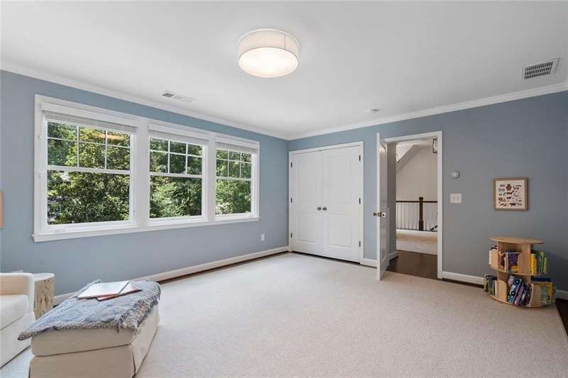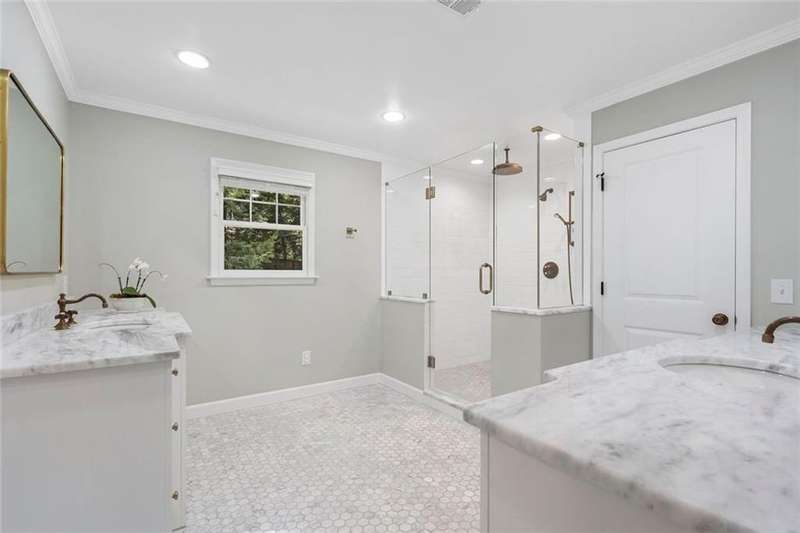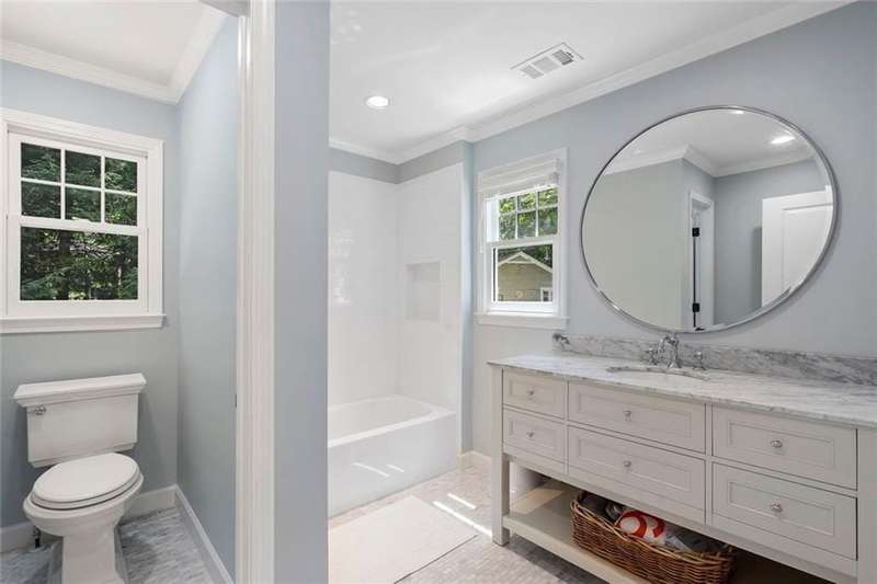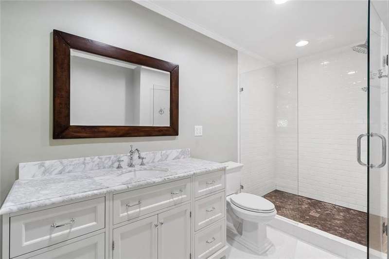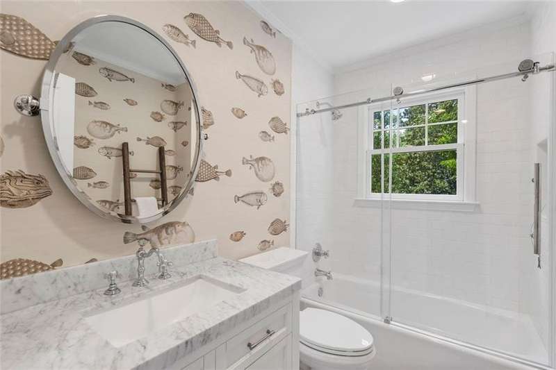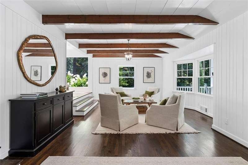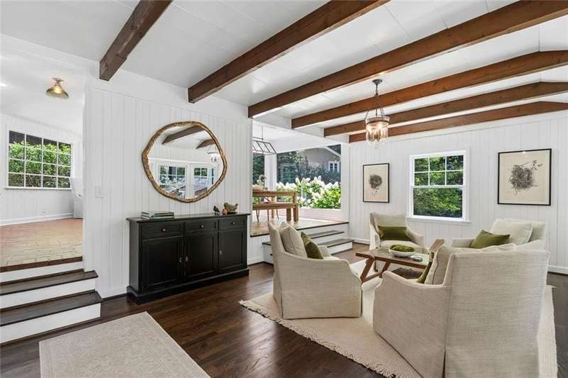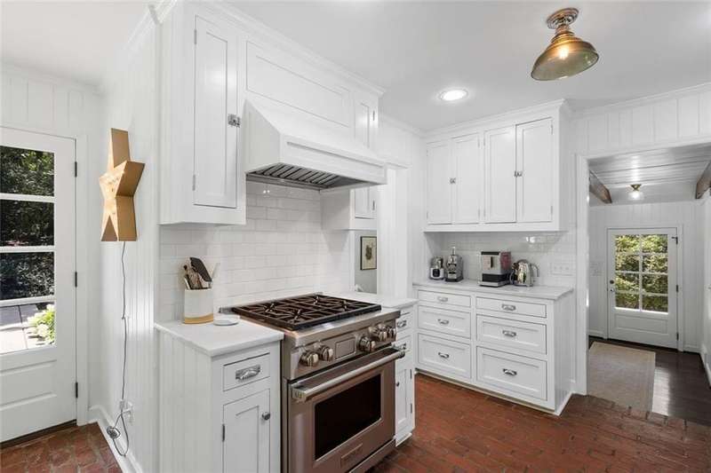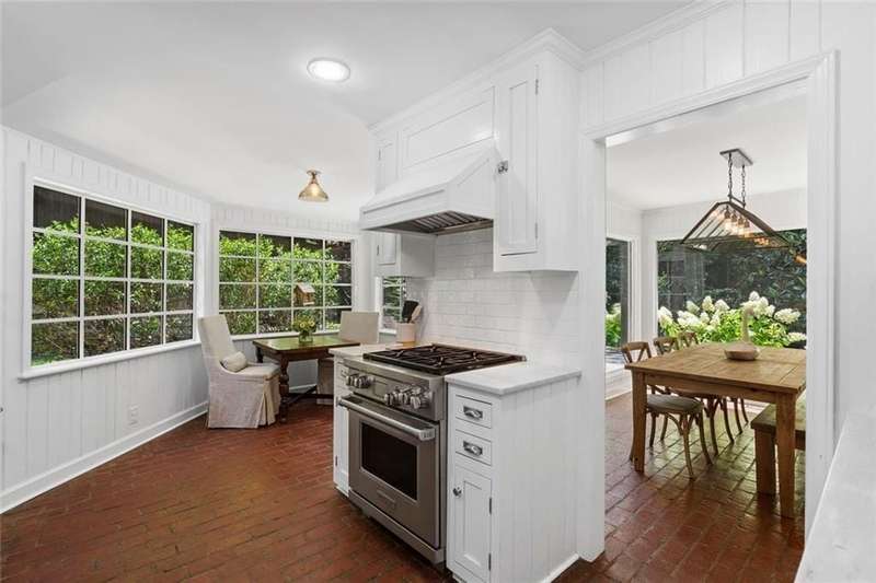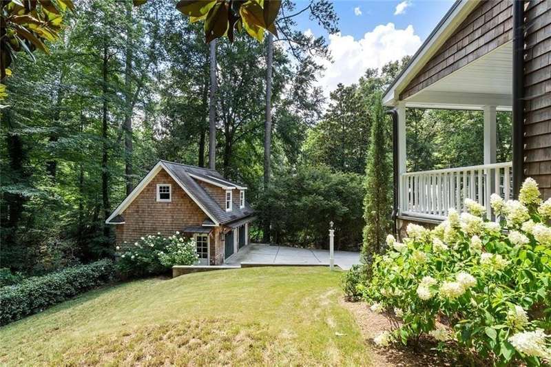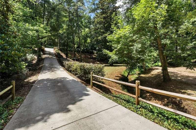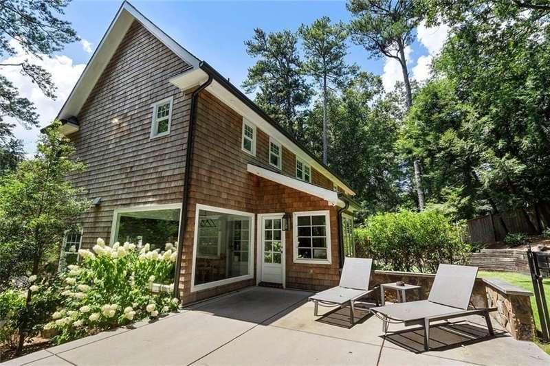 In the heart of Chastain Park, this exquisite Hamptons-inspired renovated home embraces original Earl McMillen-designed charm. Nestled on a quiet tree lined cul-de-sac street, this sophisticated home tucks into a private acre. A charming bluestone front porch leads into a main level living room, with beamed ceilings, oak paneling, and hardwood floors. The kitchen features marble counters, Wolf range, original brick floors and custom steel windows in the breakfast nook. This seamlessly flows into the spacious living room and dining area, as well as the den, all ideal for entertaining and everyday living. Delightful living areas with tons of natural light, sweeping views of nature, and lots of details that add character. The main level also has original primary suite and en-suite bath, and additional bedroom and full bath in hall. The expanded second story addition features new primary suite with en-suite bathroom, double vanities with marble counters, and oversized closet with built ins. Additionally, two en-suite bedrooms and a bonus room drenched in sunlight. Lower level daylight flexible living area, bath, and laundry room. Professionally landscaped and fully fenced, gated front entry, large walk-out patio off kitchen, whole-house generator, Rain Bird irrigation system, and detached 2-car garage with storage and EV charger capacity. Located in the sought after Jackson Elementary school district and just minutes to schools, the PATH, amphitheater, horse park, NYO ballfields, tennis, golf, pool and playground. Easy access to Sandy Springs, Buckhead, and major highways.