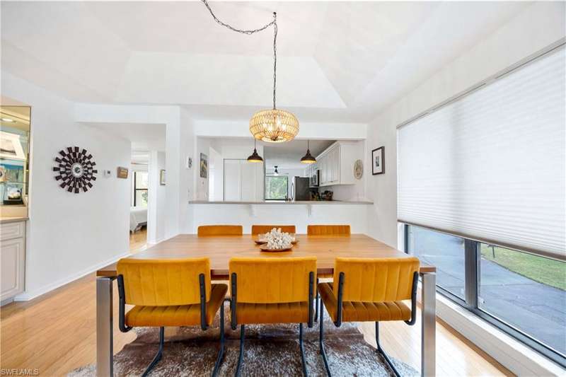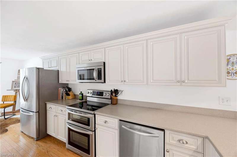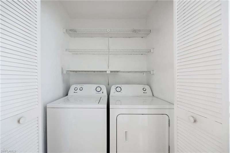 This END unit, beautifully updated and bright, 2 bed / 2 bath condo in the highly desirable Fountains V is just steps from the pool. The kitchen is tastefully appointed with premium cabinetry, solid surface countertops, stainless steel appliances, a pantry, and a separate laundry area with full-size washer and dryer plus extra storage. The large great room features high tray ceilings and a dining area that opens to a screened-in lanai overlooking the pool. The owner s suite includes an ensuite bath with double vanity, step-in shower, and walk-in closet. The second bedroom also offers a spacious closet and adjacent full bath. A sunny breakfast area off the kitchen can double as a den or home office. Additional updates include a brand-new hot water heater (2024). The quiet and serene community features two sparkling pools and a variety of social activities. Located just minutes to the shopping and dining of Lely, Bayshore Dr, 5th Ave, 3rd St, and the white sand beaches this property