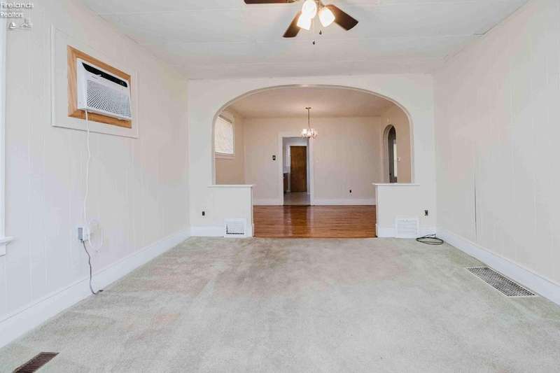 Welcome to this delightful 3-bedroom, 1-bath home, offering 1,097 square feet of cozy living space. This charming residence combines classic appeal with splashes of freshness, making it an ideal place to call home.The home features a thoughtfully designed layout that maximizes space and comfort. The primary bedroom is secluded from the other bedrooms, offering a private space. Enjoy the beauty of some restored hardwood flooring, complemented by freshly painted rooms that enhance the home's cozy ambiance. The restored hardwood flooring mixed with carpeting adds warmth and character to the home. Need more storage? The full basement: provides ample space for laundry and storage.The outdoor space is designed for relaxation and entertaining. New siding, windows, outside doors & roof has been taken care of in March of 25. Covered lean-to off the house, perfect for outdoor dining. Bonus overhead coverage from the garage to the back door. Carport next to the garage for additional parking. The 2-Car garage with an additional single car door to make storage a breeze. Alley access for extra parking and convenience.Enjoy the convenience of being within walking distance to downtown, with easy access to local shops, restaurants, and amenities. This charming 3-bedroom home offers a comfortable and convenient lifestyle. With its updated features, delightful outdoor spaces, and prime location, it's a perfect place to create lasting memories. Don't miss the opportunity to make this house your home!