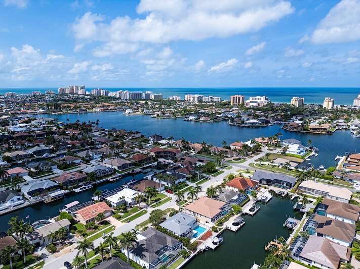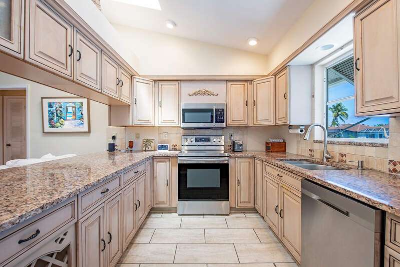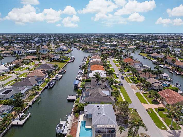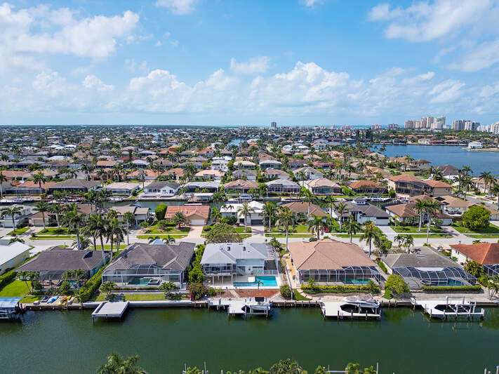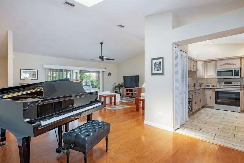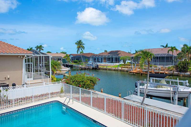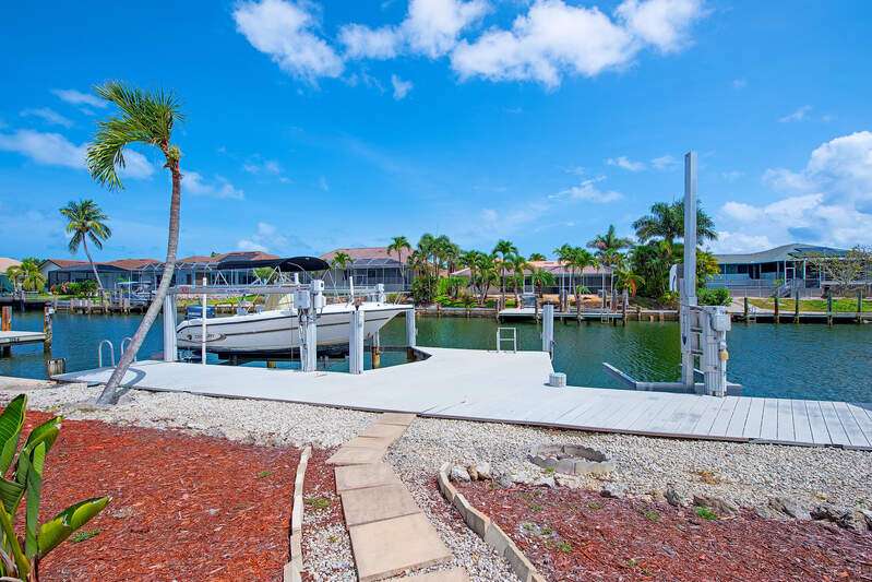 Welcome to your dream retreat in this charming Old Florida-style home, perfectly situated with indirect Gulf access. The expansive dock features both a boat lift and a jet ski lift, making it a water lover's paradise.As you enter through the generous lower foyer, you're greeted by a wide staircase leading to the main living area. The enormous living and dining room is filled with natural light from skylights and offers sliding doors that open to a delightful front screened balcony, perfect for enjoying the coastal breeze.The updated kitchen boasts elegant granite countertops and an abundance of cabinetry, including a built-in wine rack, making it a chef's delight. Adjacent is a tiled family room, adorned with ample windows and sliders that lead to the serene rear screened balcony.This home features a thoughtful split-bedroom floor plan, with cozy, carpeted bedrooms for ultimate privacy. The lower level provides two versatile bonus rooms-ideal for a workshop, hobby space, or extra storage. Step outside to the expansive shady lanai, perfect for relaxation, and enjoy the fenced pool area, offering plenty of space for sunbathing.The oversized garage provides ample room for your vehicle, toys, or additional storage needs. Located just a short distance from pristine white sandy beaches, shops, and dining, this home offers the ideal blend of comfort and coastal living. Don't miss your opportunity to experience this exceptional property!
