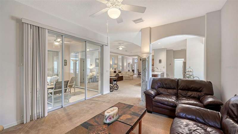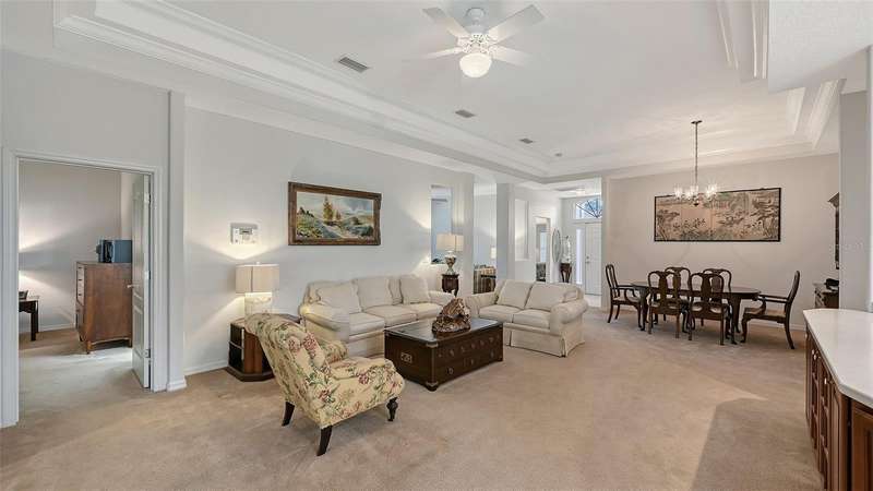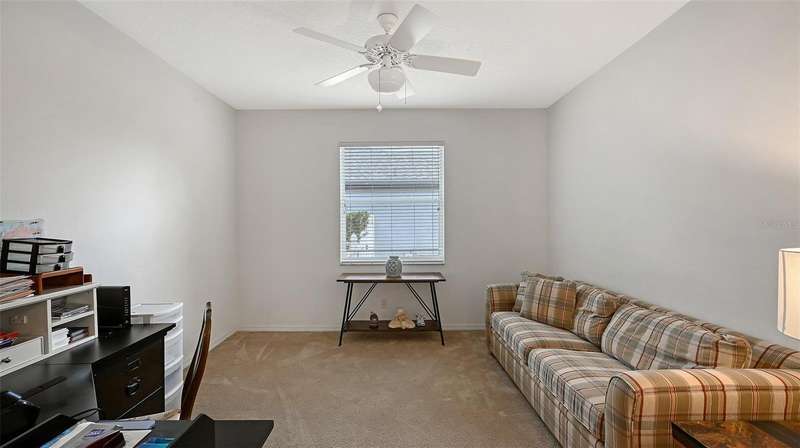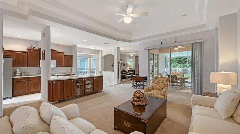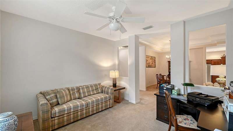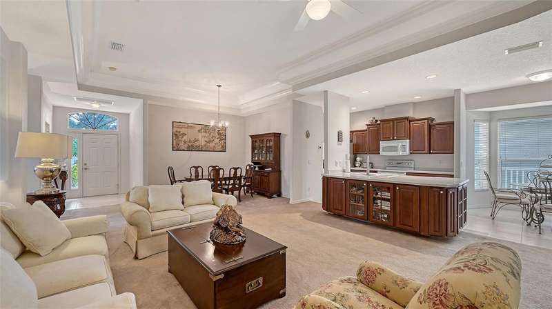 Welcome to this beautifully maintained and move-in ready home located in the highly desirable community of Carlyle at The Villages of Palm-Aire. This versatile 2-bedroom, 2-bath home also features a den/office, a spacious bonus room, and a 2-car garage, offering plenty of room to suit your lifestyle. With high ceilings and an open floor plan, the living spaces feel bright, airy, and inviting. The kitchen is spacious and perfect for both everyday living and entertaining. The den can easily be enclosed to create a third bedroom, while the bonus room offers endless possibilities; use it as a hobby room, playroom, TV room, or additional office space. Step outside to a large screened lanai and fully fenced yard, ideal for relaxing or enjoying Florida’s beautiful weather year-round. The home also boasts a newer roof (2022), giving added peace of mind. Located in an active, friendly neighborhood with no CDD fees and low HOA dues, residents have access to fantastic community amenities including a pool, tennis courts, basketball court, and playground. Optional membership to the nearby Palm-Aire Country Club adds even more value, offering two championship golf courses, a clubhouse, fitness center, swimming pool, and Har-Tru tennis courts. Centrally located near UTC, Lakewood Ranch, Downtown Sarasota, SRQ Airport, and just a short drive to the stunning Gulf Coast beaches of Sarasota and Bradenton, this home truly has it all. Whether you’re searching for a primary residence or a seasonal retreat, don’t miss your chance to own this exceptional home in one of Sarasota’s most convenient and sought-after locations. Schedule your private showing today!