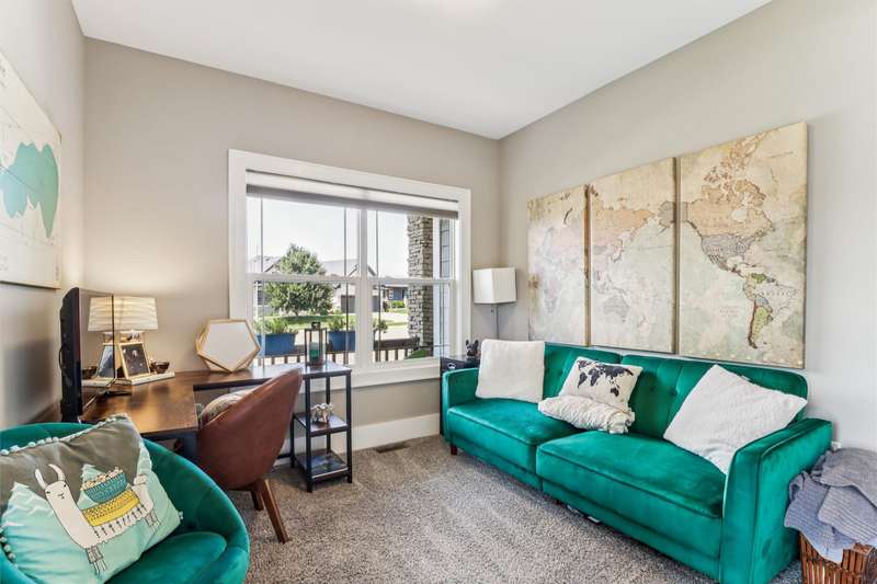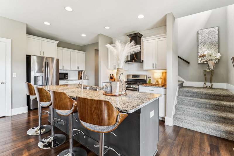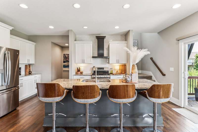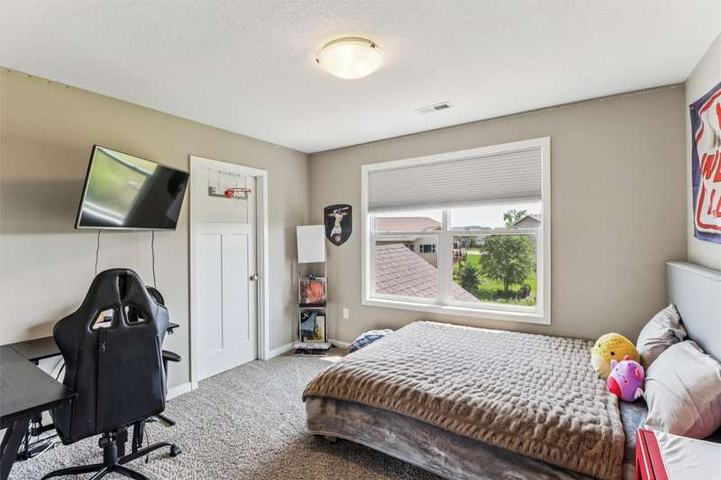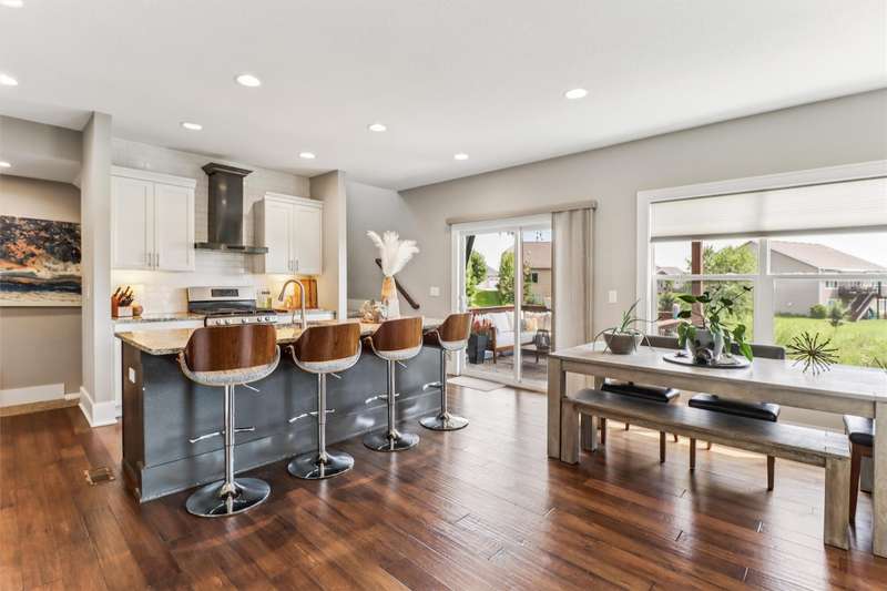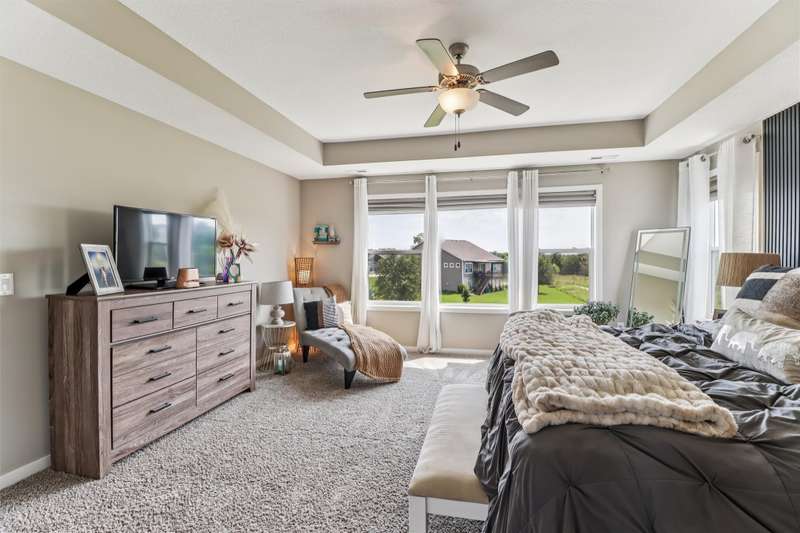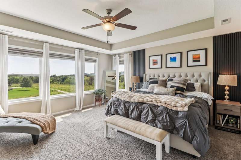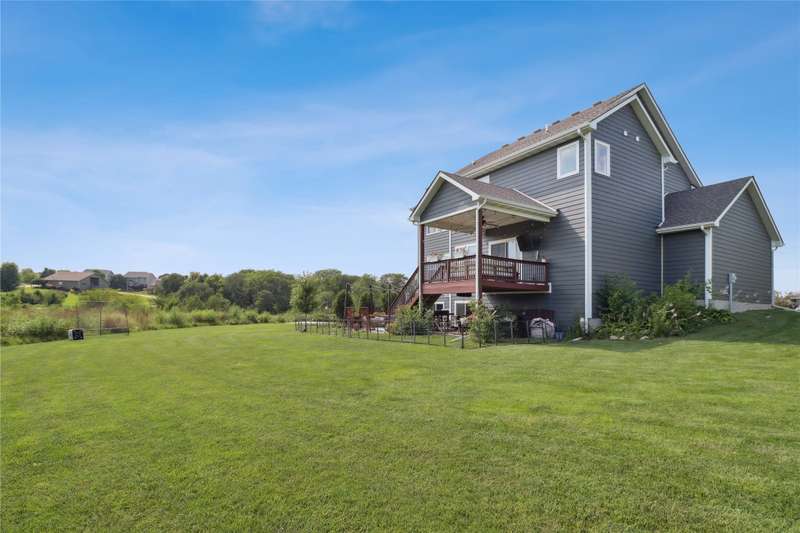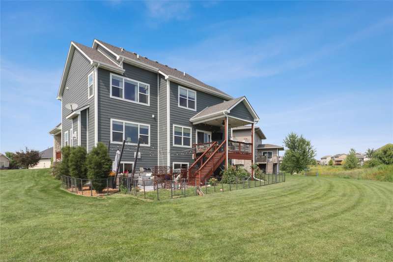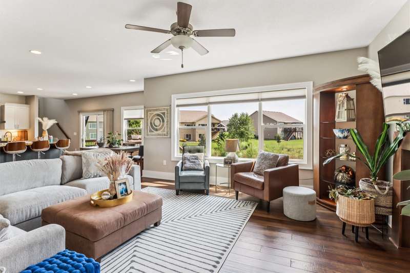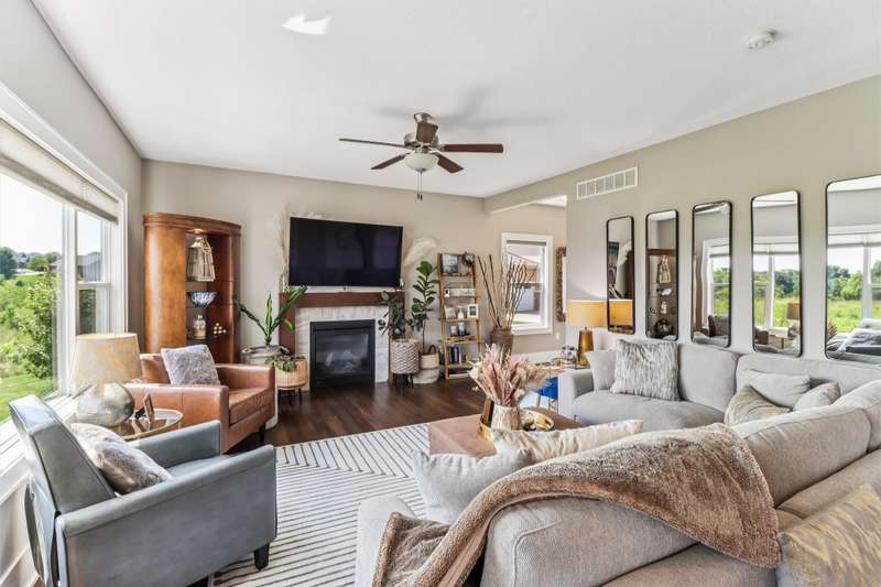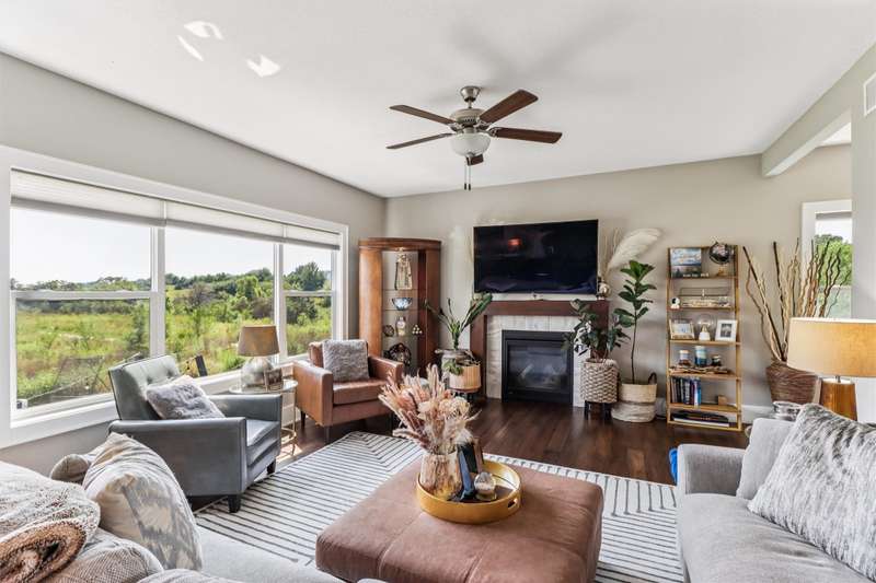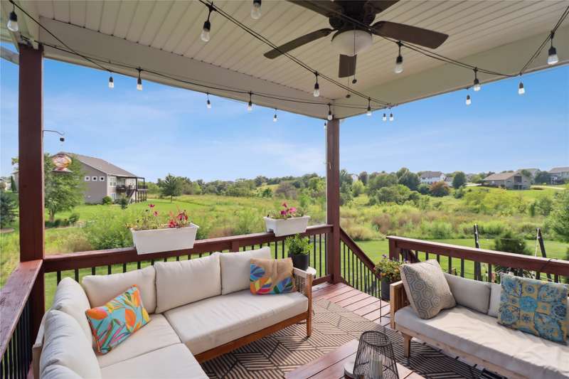 Looking for your own private retreat? Nestled on a quiet cul-de-sac and backing to acres of open prairie, this home offers the perfect blend of privacy and community on a spacious .38-acre lot. Enjoy outdoor living from the welcoming front porch, covered deck, or large patio. Inside, natural light pours through oversized windows, highlighting warm finishes and beautiful details throughout. The open main level features a fireplace, a stunning white kitchen with extra bar area, pantry, stainless appliances, and tiled backsplash, plus a generous dining area with slider to the deck. A main-floor office (or bedroom), half bath, and mudroom off the garage add function and flexibility. Upstairs, the oversized owners suite impresses with huge windows, dual closets, two vanities, and a tiled shower. Three additional bedroomsall with walk-in closetsbath with double vanities, and the spacious laundry room offers extra storage. The finished lower level is designed for entertaining with a full bar/kitchen, rec space, 6th bedroom, and 4th bath. All this plus the unmatched amenities of Glynn Village: clubhouse, pools, playgrounds, trails, and acres of prairiewhile being close to schools, the library, golf, interstate access, and shopping. Dont miss this one!