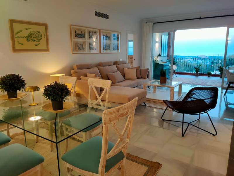 2 bedroom apartment located in the exclusive urbanization Monte Halcones, La Quinta Golf with spectacular views of the sea, mountains and golf courses. Next to The Westin La Quinta Golf Resort & Spa Hotel. It is located a few minutes from San Pedro de Alcántara, Puerto Banús, the promenade and the beach.