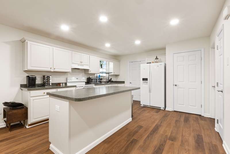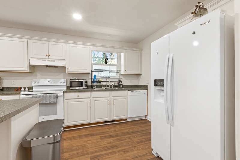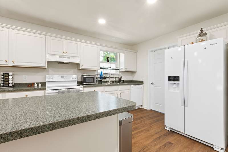 Welcome to this updated 3-bed, 2-bath ranch, while renovated in 2022 , new luxury vinyl plank flooring throughout the main living areas was installed in June of 2024. The inviting mudroom leads to an open floor plan with a spacious kitchen, generous cabinet and counter space, and a large island with bar seating—ideal for casual meals or entertaining. All three bedrooms are roomy with ample closets; the primary suite offers dual closets and space for a king bed. Enjoy the serene backyard from the rear deck. Schedule your showing today!
