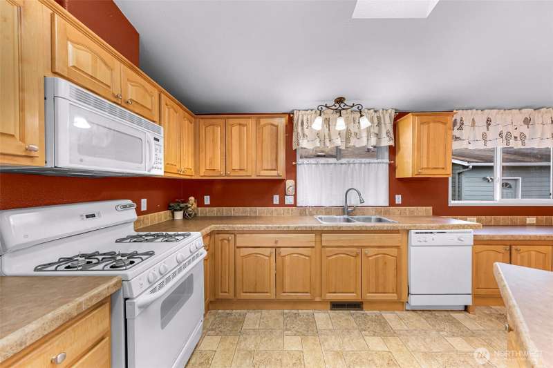 Welcome home to Portal Creek 55+ Park!! Step into this well-maintained and beautifully landscaped home. 3 bedrooms, 2 bathrooms with an open concept living area. Vaulted ceilings throughout and skylights help create a light and open living space. Large kitchen with lots of cabinet storage and counter space. All appliances included. Great dining space adjacent to kitchen. Cozy living room with gas fireplace and warm wood floors. Primary bathroom features low barrier entry shower. Finished 2 car garage w/ramp to house. Back yard patio and gravel area with lots of potential. Enjoy great community and spacious clubhouse at the center of the Portal Park neighborhood.