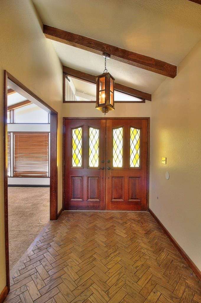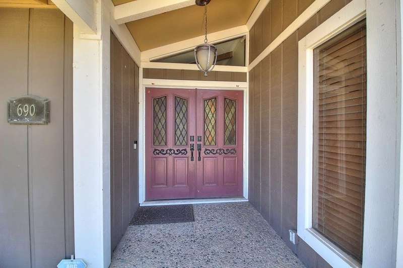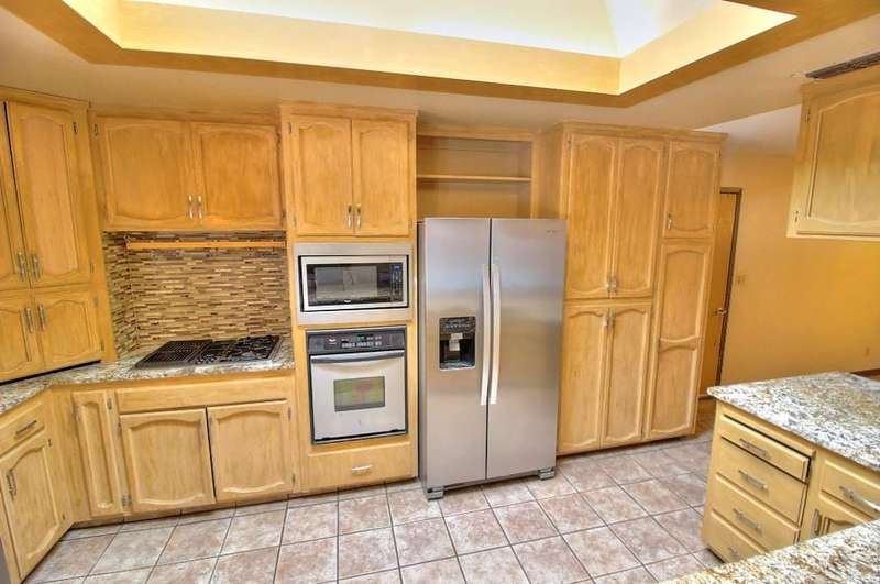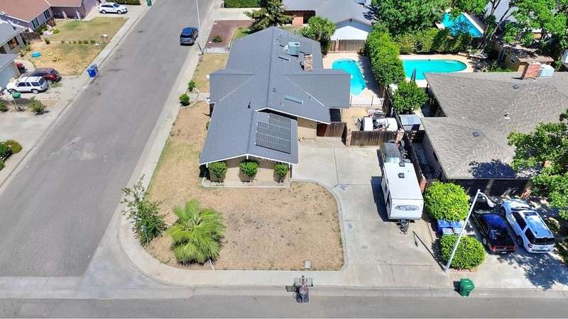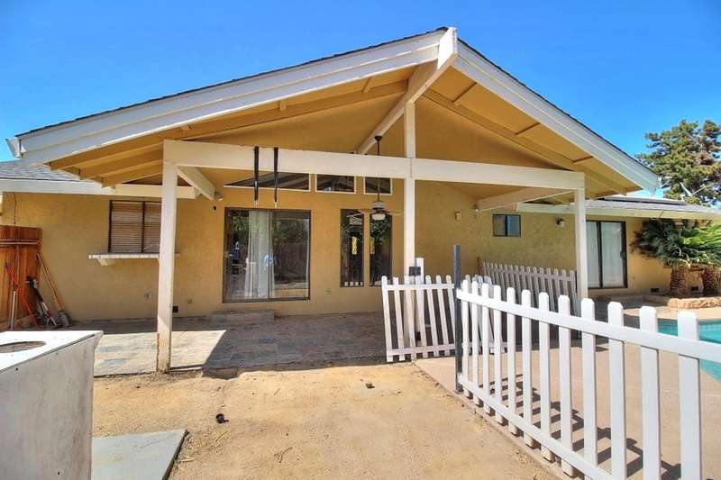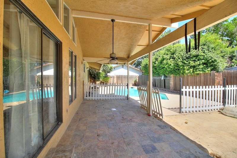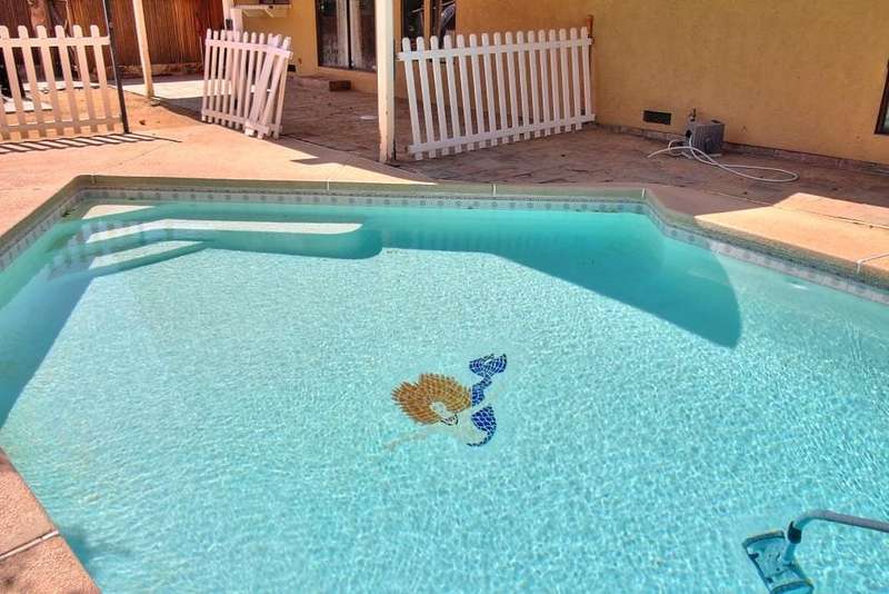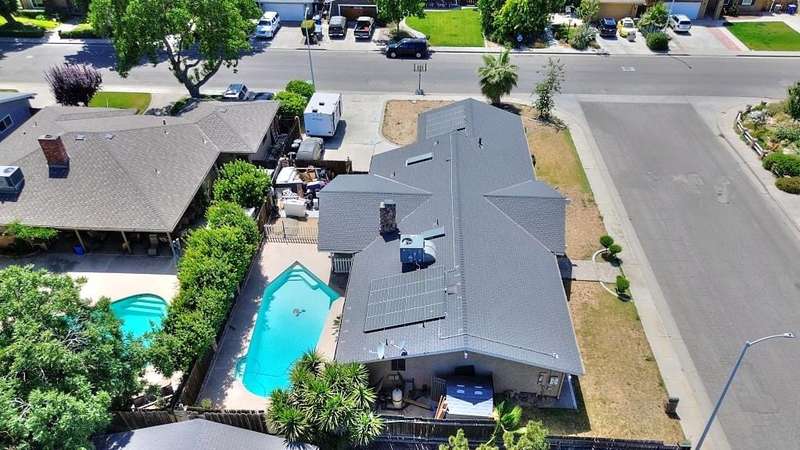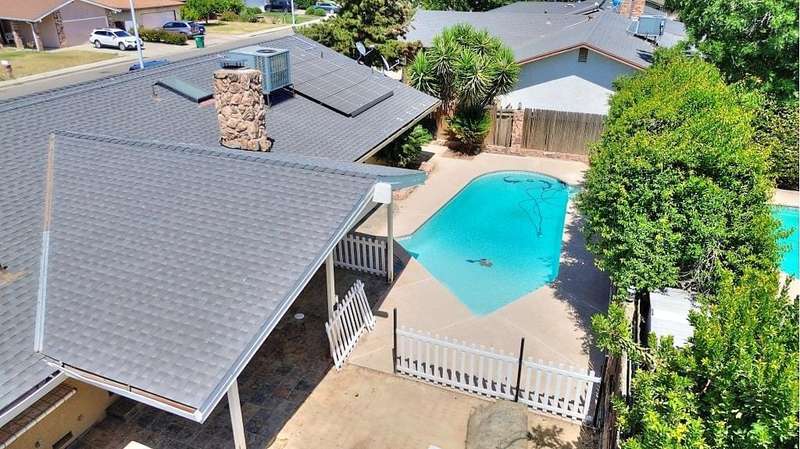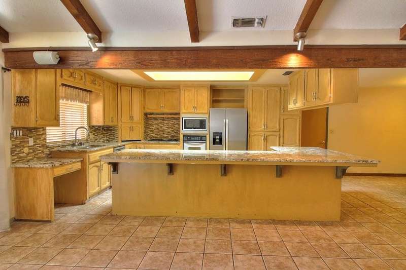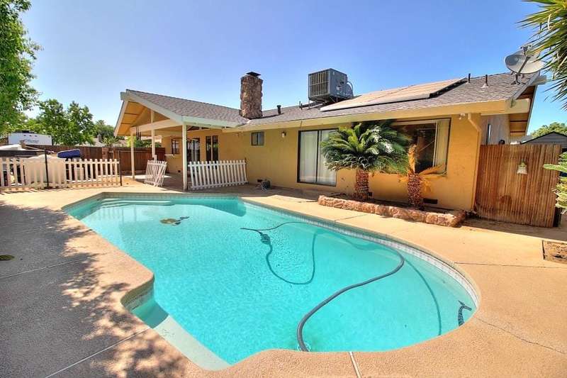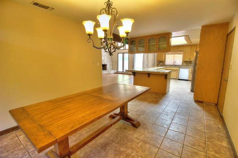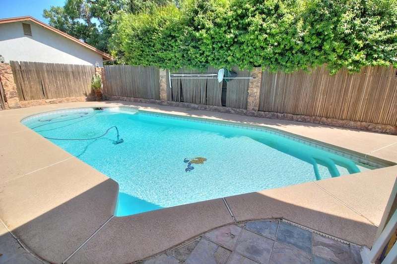 Entertainer's Dream! This custom-built home offers over 2,000 sq ft of thoughtfully designed living space, perfect for hosting unforgettable gatherings. Step into the spacious Great Room featuring vaulted beam ceilings and a stunning floor-to-ceiling rock fireplace. The show-stopping kitchen boasts a live-edge granite island with bar seating, skylight, Jenn-Air indoor BBQ cooktop, Bosch dishwasher, gas wall oven, and an adjacent formal dining area with room for eight. Enjoy privacy-tinted windows, double-sided privacy fencing, and a sparkling inground poolcomplete with a nearby covered dining area and convenient pass-through window. Additional highlights include new laminate flooring in the main living areas, a 7-year-old roof, a 6-year-old pool filter, and a dedicated office or den. This unique property truly has it allcomfort, character, and room to entertain!