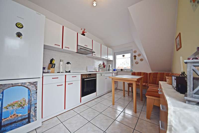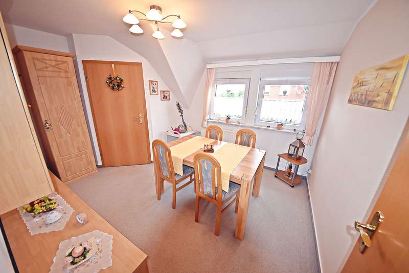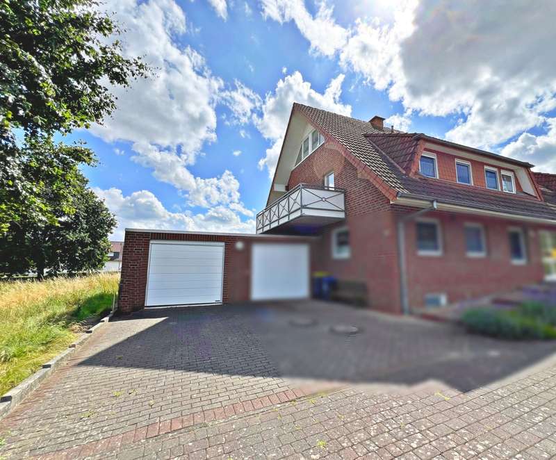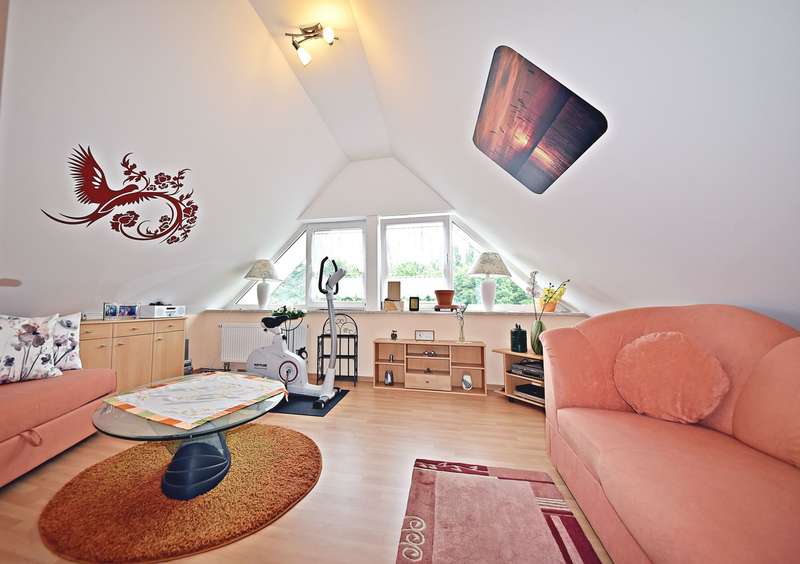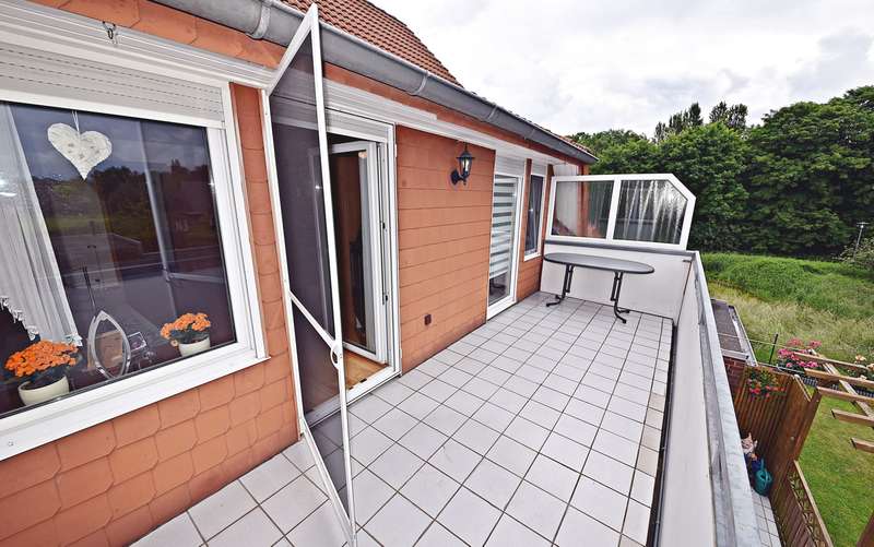 This spacious maisonette apartment extends over two floors and offers a well-thought-out living concept with well-dimensioned rooms and lots of light on a total living space of approx. 132m². The large living room offers plenty of space and has large windows that flood the room with natural light. From here, you can access the south-facing balcony, which can also be reached from the bedroom. The kitchen is functionally designed and adjoins an east-facing balcony. Here you can enjoy the morning sun. There is also a dining room, which can be used for other purposes if required. A comfortable bedroom with direct access to the south-facing balcony promises peace and relaxation. Double-glazed windows ensure optimum heat and sound insulation. Real wood parquet flooring and external roller blinds ensure increased living comfort. On the upper floor there is an open-plan area that can be used in a variety of ways, whether as a study, reading corner or additional living space. This area contributes to the generous room layout and the special charm of the apartment. A garage and an additional parking space offer ample parking options. An easy-care garden rounds off the offer and invites you to spend relaxing hours outdoors. The entire house is in a well-kept condition and has been regularly maintained. The house was built in 1998 in solid construction. It is a semi-detached house with a full basement and 2 parties. There is a separate cellar room and shared utility rooms in the basement. The maisonette is located in a popular residential area in Rodenberg. The area is characterized by its tranquillity and family-friendliness, while at the same time offering excellent transport links. There are schools, kindergartens, shopping facilities and public transport nearby, making it easy to reach destinations in and around Rodenberg.