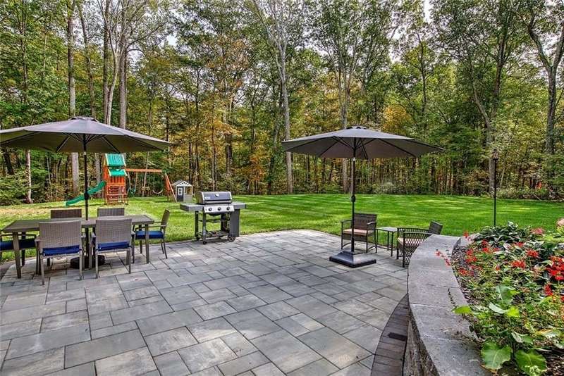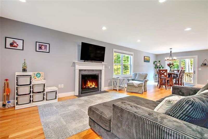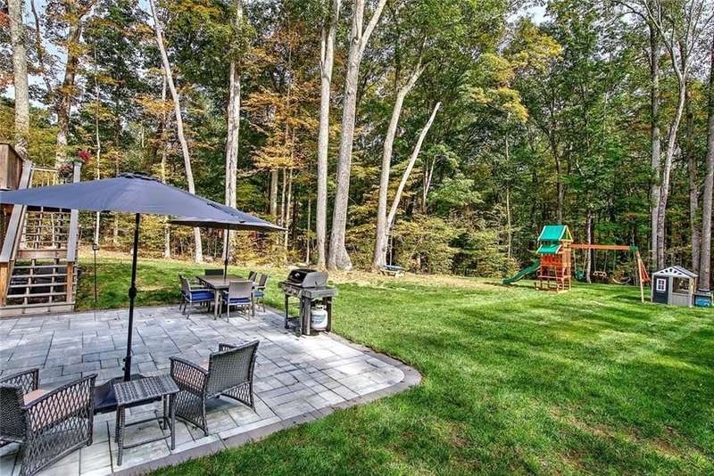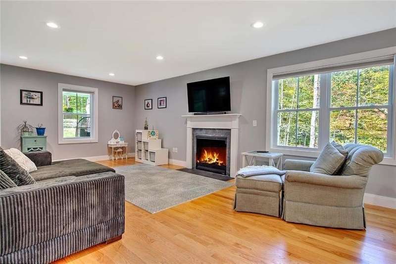 Charming custom-built Colonial nestled on 4 private acres at the end of a quiet dead-end street. Built in 2022, this thoughtfully designed home blends modern amenities with everyday comfort. The open floor plan features a gourmet eat-in kitchen with quartz countertops, high-end stainless-steel appliances, premium cabinetry, and a breakfast bar with seating. The kitchen flows seamlessly into the dining area and a sun-drenched family room, complete with abundant windows and a cozy gas fireplace. A spacious pantry and a half bath complete the first floor. Upstairs, the primary suite offers a large walk-in closet with custom cabinetry and a spa-like bathroom with a dual-sink quartz vanity and a walk-in shower with custom glass door. Two generously sized bedrooms with custom closets share a full bath, while a versatile bonus room makes a perfect 4th bedroom, office, gym, or playroom. Central air, hardwoods and second floor laundry. The finished walk-out lower level is a true highlight—featuring a large family room, full bath, daylight windows, and ample storage space. Enjoy the manicured grounds and wooded privacy from the elevated deck or the recently built custom patio with accent lighting. A two-car garage provides added convenience. While surrounded by nature and serene views, this property is just minutes to Route 95, schools, shopping, golf and nature trails.