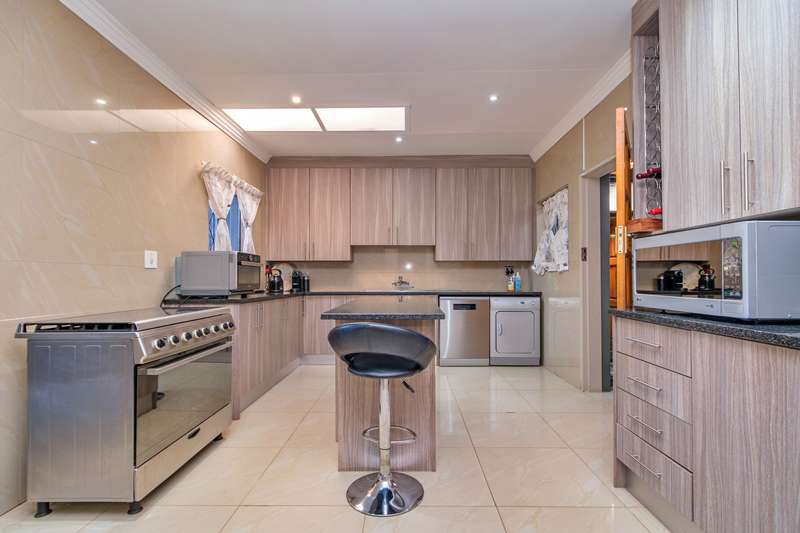 Welcome to a warm, homely haven, safe and secure perfect for large families who love to entertain! This beautiful property boasts 4 generous bedrooms, 3 bathrooms, a modern kitchen, and an open-plan lounge & family room that flows seamlessly onto a sunny enclosed patio with a built-in braai and stacking doors – ideal for year-round entertaining. Enjoy cozy nights by the fireplace, or summer days by the sparkling blue pool. A fully fitted cottage offers fantastic income potential or space for extended family. Plus, it comes equipped with a 7.5KVA generator and borehole water – convenience and peace of mind all year round. Nestled in a quiet street in sought-after Helderkruin, you’re close to top schools, shopping centres, and nature trails, with easy access to major routes. Don’t miss out on this entertainers' dream and family paradise. Book your viewing today!