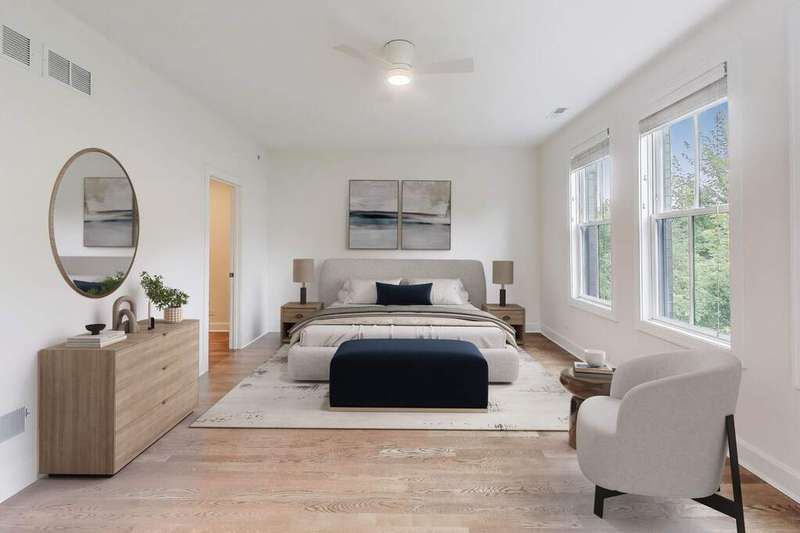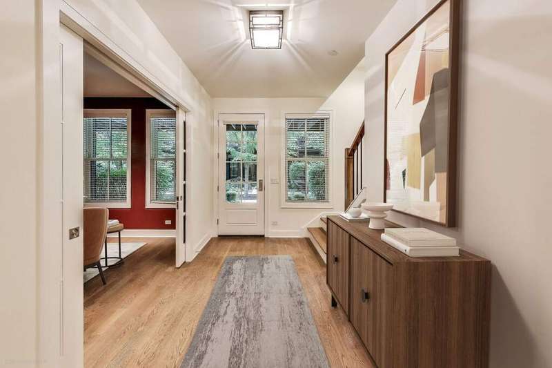 Luxury Mount Prospect living at it's finest! This gorgeous 4 level modernly constructed townhome offers an open-concept living area that seamlessly blends comfort and elegance, making it an ideal space for entertaining guests and relaxation! In unit elevator stopping at every level for your convenience! Enter first level from heated two car attached garage with epoxy flooring to guest bedroom and full bath. Prepare to be impressed with second level chef's kitchen with quartz counters, stainless appliances, tile back splash, tons of cabinetry and seating at expansive island! Enjoy quiet mornings on private maintenance free outdoor oasis overlooking lush green courtyard with fountain! Large sundrenched living room and powder room. Third floor primary with huge walk in closet to massive tile bath featuring soaking tub and separate shower. Secondary bedroom with ensuite bath. Full laundry room off hallway, ample closet space, and much more! Basement features a flexible space that has many uses (office, exercise/yoga, gamer space, craft room, etc). Additional assigned parking space for 3rd car or guests. Too many upgrades to list! Located within walking distance to Metra, library, restaurants, shopping, and more! Easy access to all major highways. Be sure to click on the link for video tour!