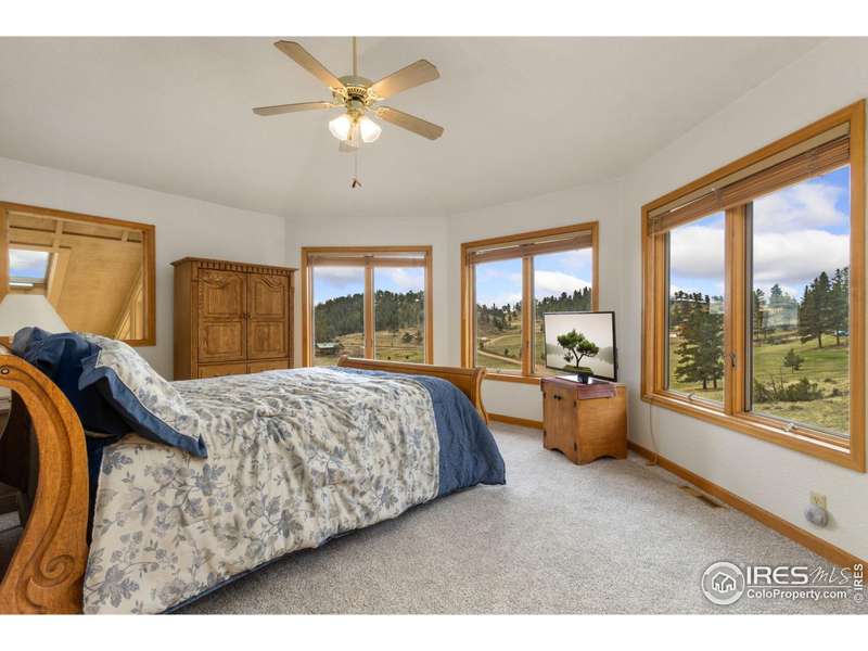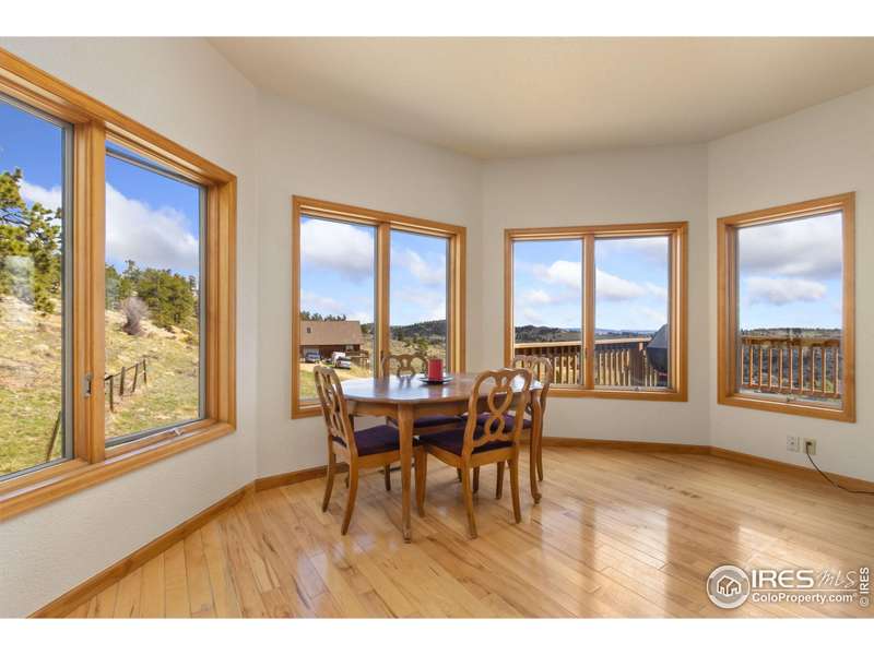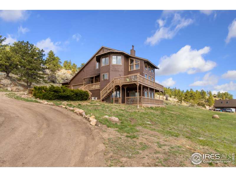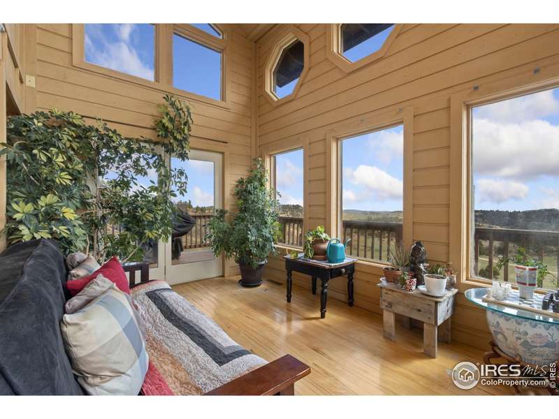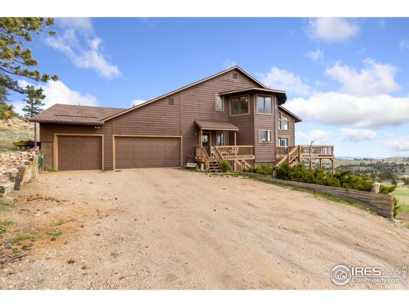 Seller would consider home sale contingency or possible trade for a smaller property! This 3 bedroom, 4 bathroom mountain home situated on 5.8 acres just 30 mins from downtown Ft. Collins. Ideal for full time mountain living for a possible getaway with modern comforts.This spacious 3200 square foot property boasts incredible views from every room! It offers an open floor plan with fresh paint and new carpeting throughout the home in addition to hardwood flooring on the main level, a stunning sunroom filled with natural light and opening skylights to provide additional fresh air. The well-equipped kitchen features maple cabinets, a center island, and large windows that fill the space with light. The primary suite includes a private bath and walk-in closet. Downstairs, the fully finished walkout basement opens to a large family room, an additional bedroom, and a second sunroom, offering flexible living space and endless potential. Enjoy the outdoors and the stunning views and landscape from a wraparound deck. It's one of just a few lots appropriately zoned for up to two horses if you so desire. There's room for your toys and storage needs in the oversized 3 car garage. Required fire mitigation for improved insurability completed in January of 2025 providing added confidence.