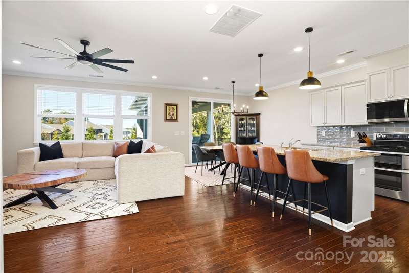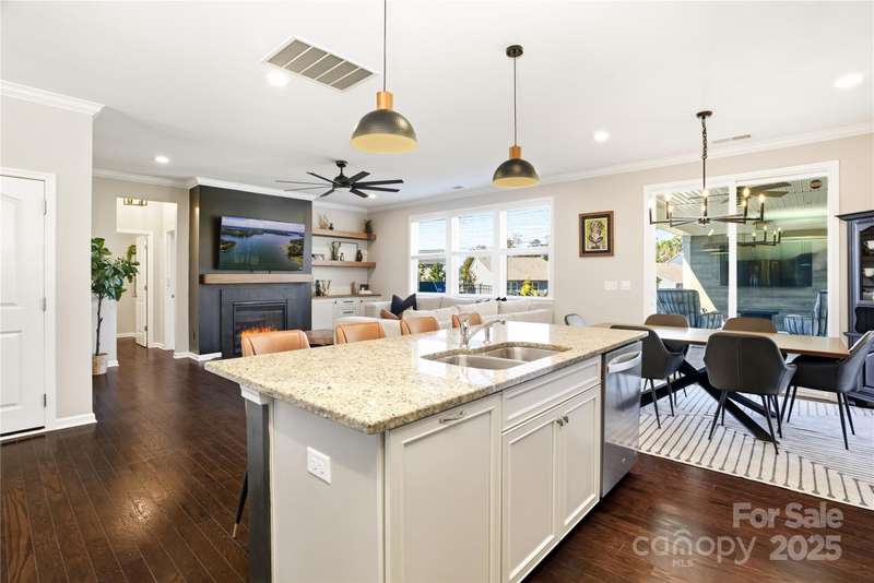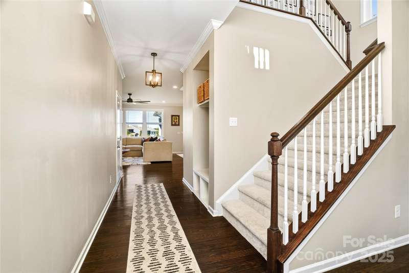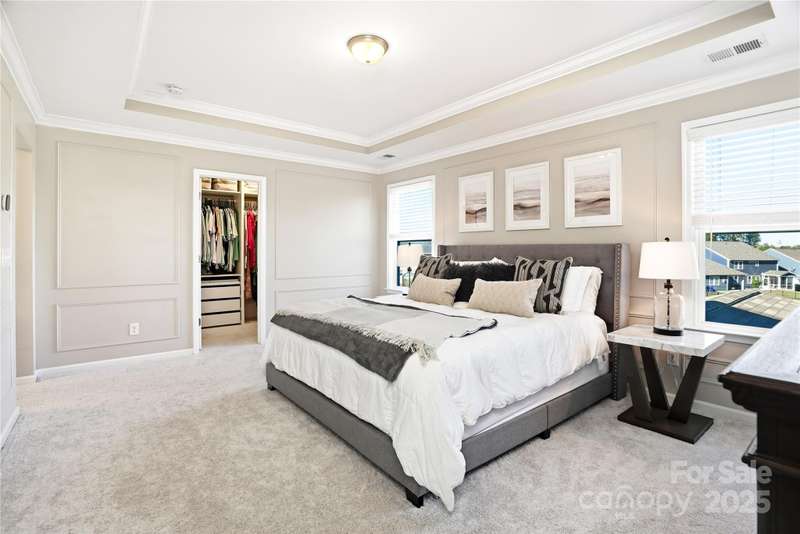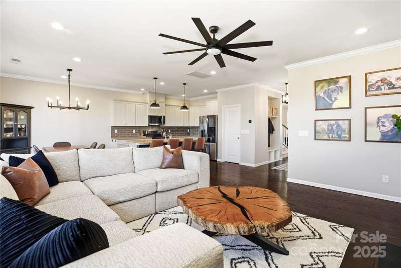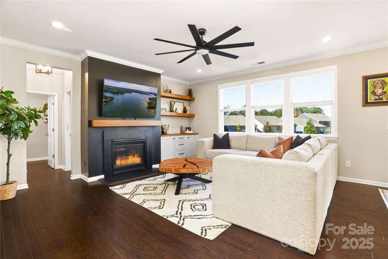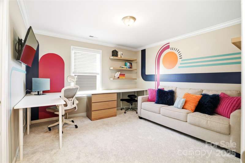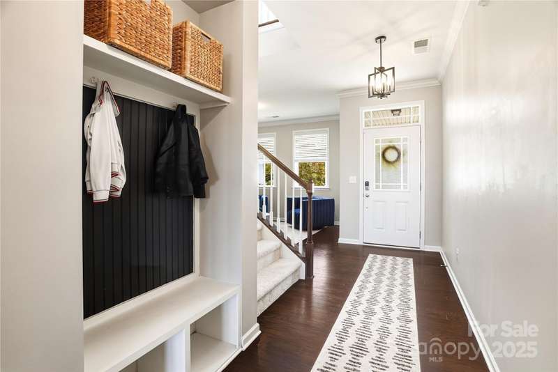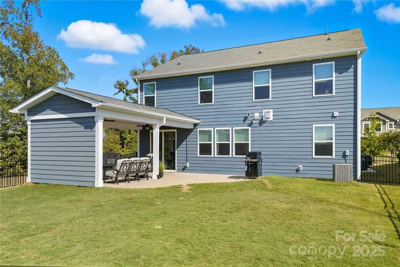 Located in the Magnolia Walk neighborhood of Huntersville, this home has been beautifully maintained and thoughtfully upgraded inside and out. The backyard features a retaining wall along the fence line to create a level yard, lush landscaping with trees, a full fence, and an extended paver patio with a large covered section including electrical and a TV mount-ideal for relaxing or game days. Inside, enjoy new carpet (Sept 2025), fresh paint (Oct 2025), and upgraded light fixtures and fans (2022-2025). Custom details include built-ins beside the fireplace with a solid wood mantle, cabinetry in the front room, closet organizers (2021), and window coverings throughout. The main level offers hardwood floors and a flexible office or guest bedroom, while upstairs includes a spacious loft perfect for play or work, a convenient laundry, and generous bedrooms. Excellent community close to the Huntersville Aquatic Center, shopping, dining, the airport, and Uptown Charlotte.