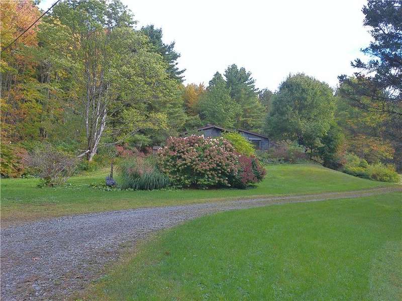 Beautiful contemporary home with a nice setback from the road on 8 acres. The property is a wildlife paradise. Well established landscaping with beauty each season. An above ground swimming pool with a wrap around deck. Amazing views in every direction. Several sliders positioned throughout the home to bring the indoors in. Walk out basement that has a family room and utility room with tons of storage. The main level has a great kitchen for entertaining and a formal dining room leading to a living room continuing on to a den /office and an enclosed sunroom. Sliders off the sunroom gives a view of a fish pond and patio with a full wooded backdrop. The deer and other wildlife are fun to watch from inside or take a walk through the beautiful pathways in the woods. Three bedrooms and 2 full baths complete this floor. The laundry is on the main floor but could be moved to the finished basement if preferred. The home has 3 sources of heat - baseboard, electric, and propane stoves. There is also a setup for a generator. So much to offer - don't wait it won't be on the market for long. Call today to set up a private showing appointment.