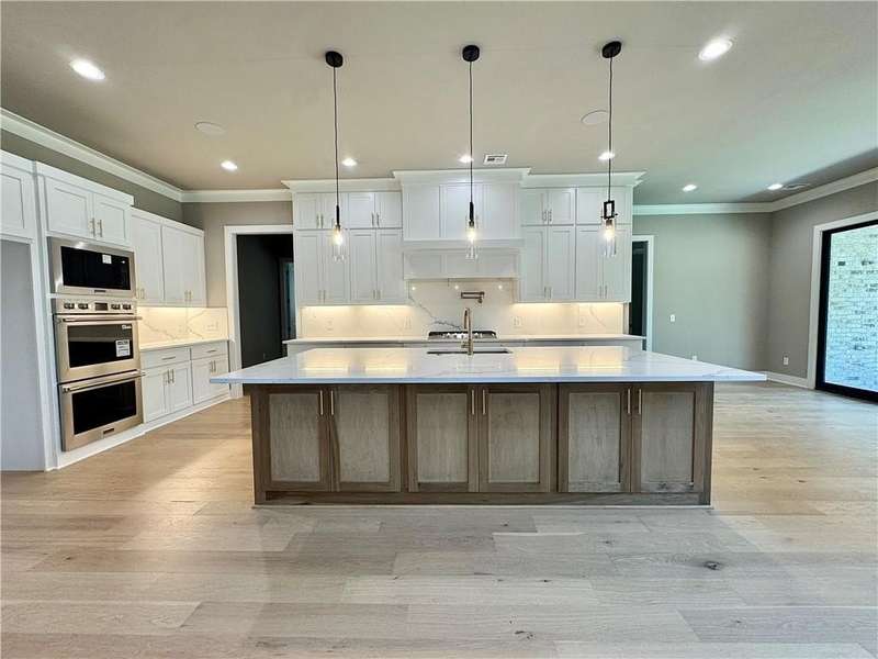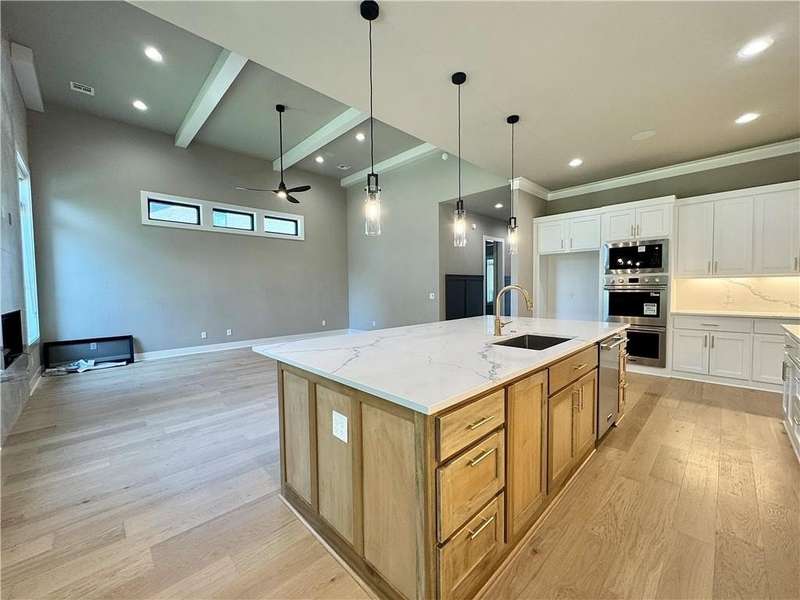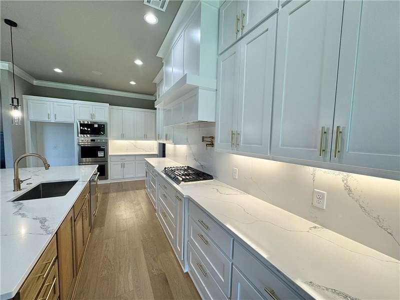Modern home in sought after community of Aurora. Stunning living room with tiled linear fireplace, custom beams, wood floors, tons of light streaming through ample amount of windows & open floorplan. Kitchen features large island with custom stain, stainless steel appliances, gas cooktop, custom cabinets, double ovens, pot filler, quartz countertops & backsplash, massive walk in pantry & storage! Home also features a secondary bedroom on the main level. Spacious, private primary bedroom with luxurious primary bathroom. Primary bath with double vanities, walk-in tile shower & stand alone soaking tub. Upstairs features three large bedrooms & a bonus room with wet-bar. Covered patio overlooking the large lot! Aurora residents have access to TONS of community amenities. Adult pool, family pool, bike repair station, dog park, elevate fitness course, sports court open air clubhouse and playground! Internet included in POA! $3,000 preferred Lender credit to Buyer for closing cost etc.