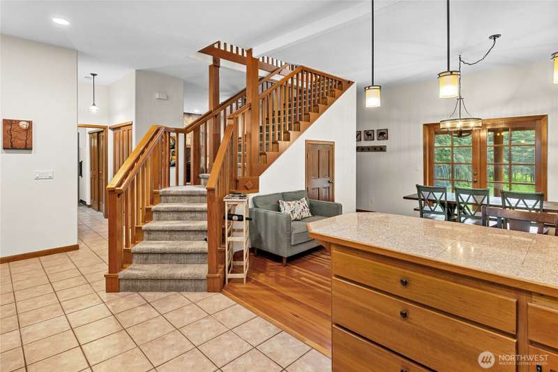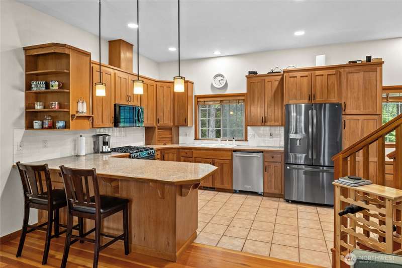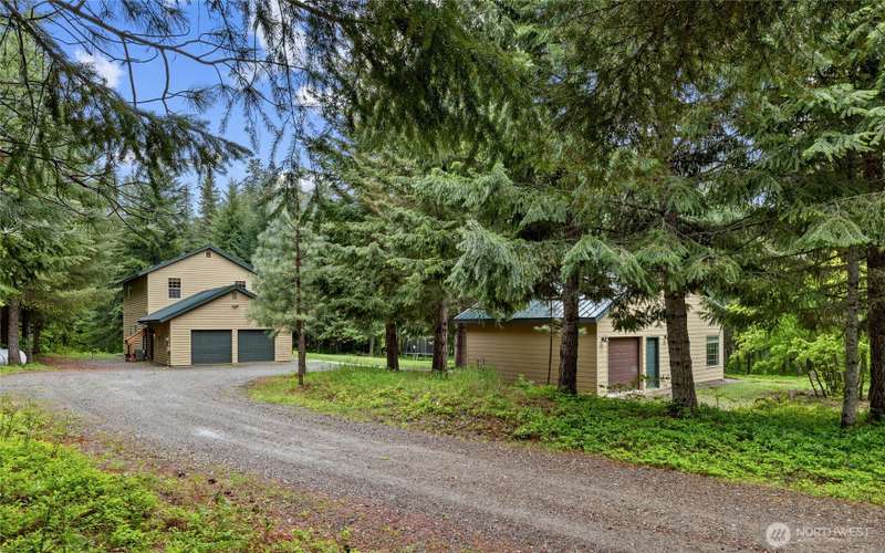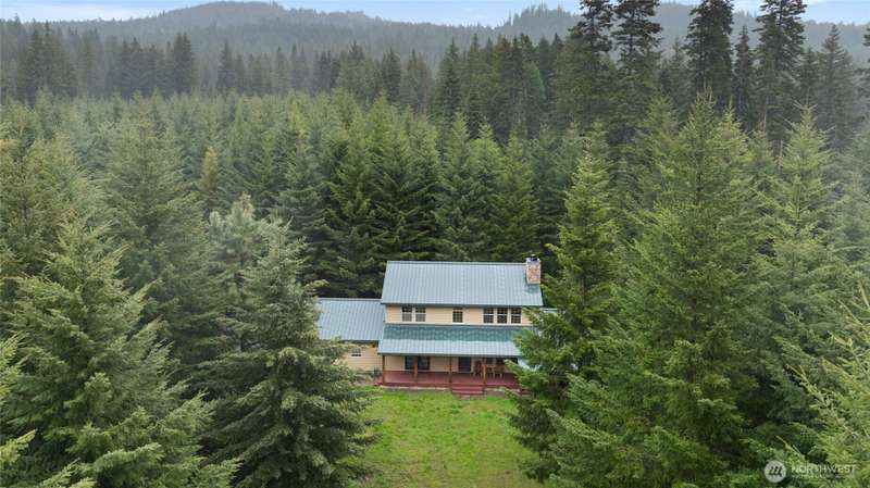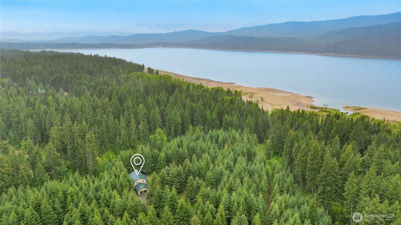 Escape to tranquility on this breathtaking 5-acre retreat, tucked away in the trees along the serene shores of Lake Cle Elum. This secluded retreat offers beauty, privacy, and four seasons of recreational fun! The main house features 3 beds, 3 baths, and a cozy living room with a wood-burning fireplace. The kitchen opens onto a spacious dining area, perfect for entertaining. Enjoy outdoor living on the wrap-around covered deck with a fireplace. Property offers a separate guest house (638 sq ft) with sleeping loft, kitchenette, and garage. Trail access to the beach for a day of relaxation. Whether it's a vacation getaway or your primary residence, this property offers the ultimate in serenity and enjoyment. No HOA, no CC&Rs.