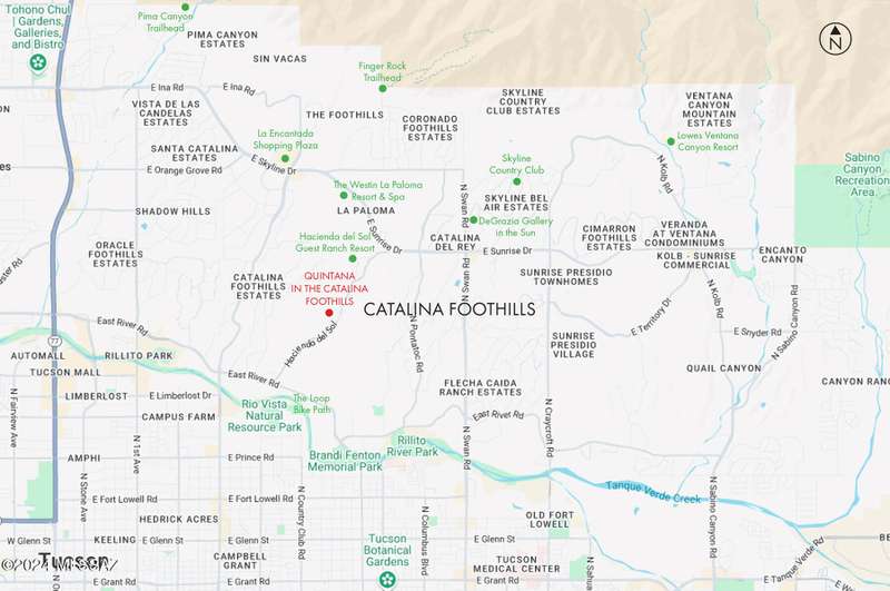 This new construction 2,516 sq. ft. home is more than a style. Contemporary desert vernacular is an architectural language grounded in place, according to local architectural historian R. Brooks Jeffery, respecting the delicate Sonoran Desert environment, and incorporating time-honored design principles with contemporary interpretations that reflect the cultural characteristics unique to Tucson. Situated on .83 acres in the gated Quintana in the Catalina Foothills, this residence offers unmatched city and mountain views and a level of construction quality rarely seen in today's new builds.Designed by renowned architect Michael Franks and brought to life by La Quinta Building Company, this 2-bedroom, 2 1/2-bath is being built to endure, featuring masonry construction