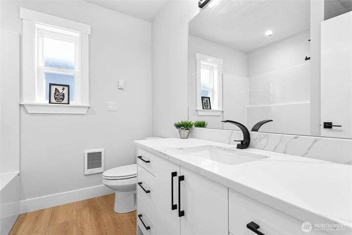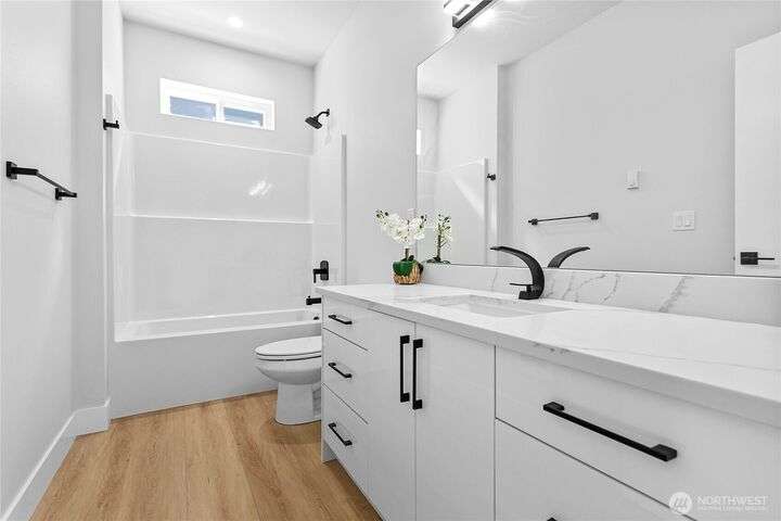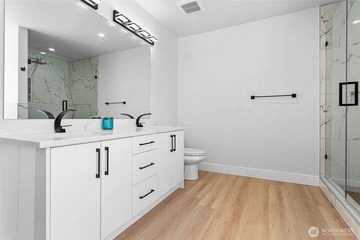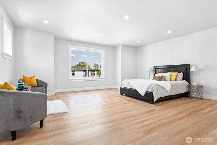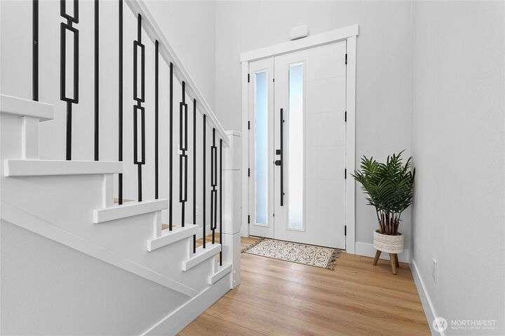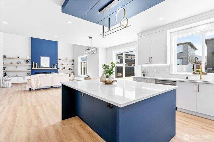Modern Luxury with Smart Features: 4 Bed, 3 Bath Home Near I-5.This beautifully designed home blends modern luxury with eco-conscious living. Step inside to an open-to-below concept living space flooded with natural light and enhanced by sleek, acrylic kitchen cabinets, and designer finishes throughout. The main floor includes a versatile bedroom and full bath perfect for guests, office-while upstairs offers three spacious bedrooms, two elegant bathrooms, and a conveniently located laundry room. Sustainable features like partially installed solar panels and a built-in EV charging station make this home both future-ready and cost-efficient. Prime location near I-5 for quick access to shopping, dining, and more.*SAVINGS $5K with Seller Credit