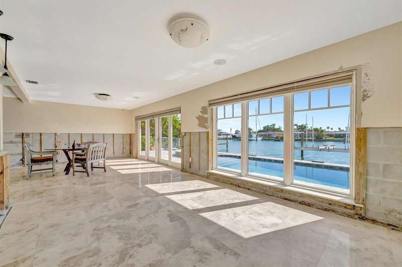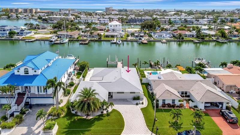 Experience the rare chance to create your own luxury waterfront retreat on one of Treasure Island’s most desirable deep sailboat water canals, offering quick access to Boca Ciega Bay and the shimmering Gulf of Mexico. Set on an expansive 70x120 lot, this 2,716 sq. ft. residence is a blank canvas for your vision, a heated pool, bubbling spa, and fire pit set against wide water views. The home’s generous layout invites effortless entertaining, with multiple gathering areas off the kitchen that flow to the pool deck and dock. The kitchen space, complete with pantry, is ready to be transformed into your dream culinary showpiece, while the formal dining room showcases tranquil water vistas. In the center of the home, a spacious lanai serves as a versatile bonus space — perfect for morning coffee, afternoon yoga, or evening cocktails in a private, breezy setting. The large family room offers a relaxed spot for movie nights or casual get-togethers. The primary suite is ready to become a serene sanctuary, with room for a spa-inspired bath, dual walk-in closets, mini split for cool sleeping on hot summer nights and an adjacent flex room ideal for an office or expanded retreat. Two additional bedrooms are generously sized, each providing comfort, natural light, and flexibility for guests or family. Additional highlights include an inside laundry room, peace of mind of storm-rated doors and windows, 2024 roof and gutters, lush landscaping, seawall (2018), dock with 16,000 lb. lift and water/electric, 2025 A/C, 2024 water heater, 2024 pool equipment, pebble tech pool and travertine flooring in the main living areas. All just minutes to Treasure Island Beach, vibrant dining, boutique shopping, downtown St. Pete, Tampa, and both airports. Bring your imagination — the possibilities are as endless as the views.