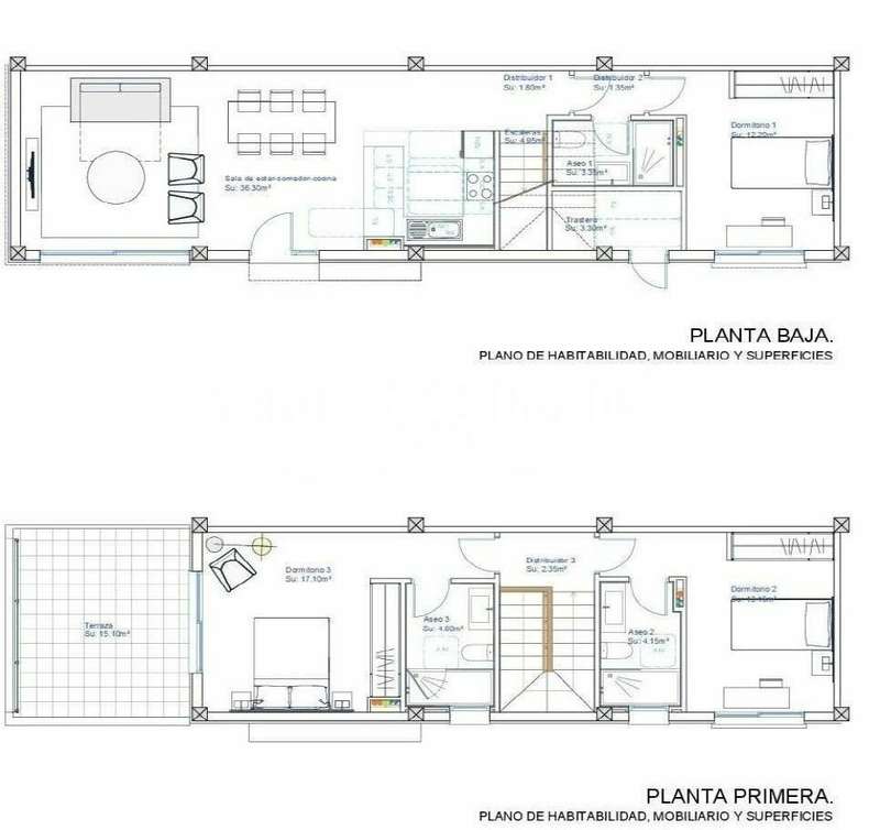 Full bathrooms with sanitary ware, including screens and faucets. Aerothermal for hot water and pre-installation of air conditioning are included in the price. In addition, the homes will be delivered with the necessary piping to connect photovoltaic panels on the roof, with a general electrical protection panel.