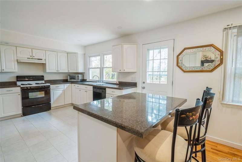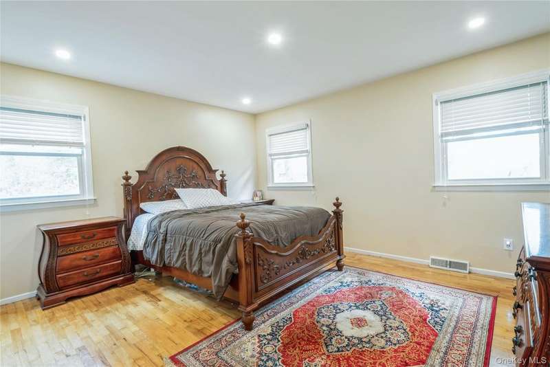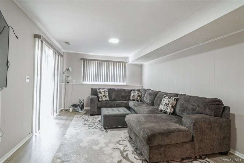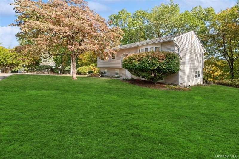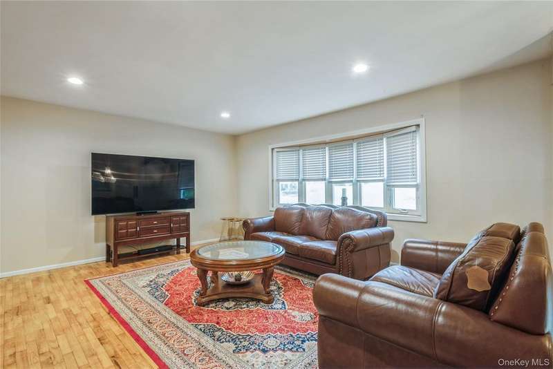 Picture perfect four bedroom 3 bath raised ranch set on over half an acre of property & situated in a cul de sac on one of Nanuet's most elegant streets! The front portico protects one from the elements, & upon entering the house the sunny exposure is immediately apparent. The spacious living room is crowned by a picture window, ushering in lots of natural light. Enjoy cooking & entertaining in the country kitchen, with lots of white cabinets, an island to use for preparation or to dine, a pantry & door to the deck. The large dining area is perfect for the family or guests! A neutral hall bath is conveniently located. Two ample bedrooms in addition to the primary suite, with separate bath including a heat lamp, complete this level. The lower level has an oversized family room, super almost new flooring, a large fourth bedroom & full bath. There's more! An auxiliary room, perfect for an office, hobby room or exercise area provides wonderful opportunities for additional enjoyment! Adding to the allure: wonderful hardwood flooring, recessed lights & a new deck as well as an oversized, private lot. Situated near transportation, schools & shops, this house is the ideal spot to establish one's "new life"! Truly a house to be cherished!