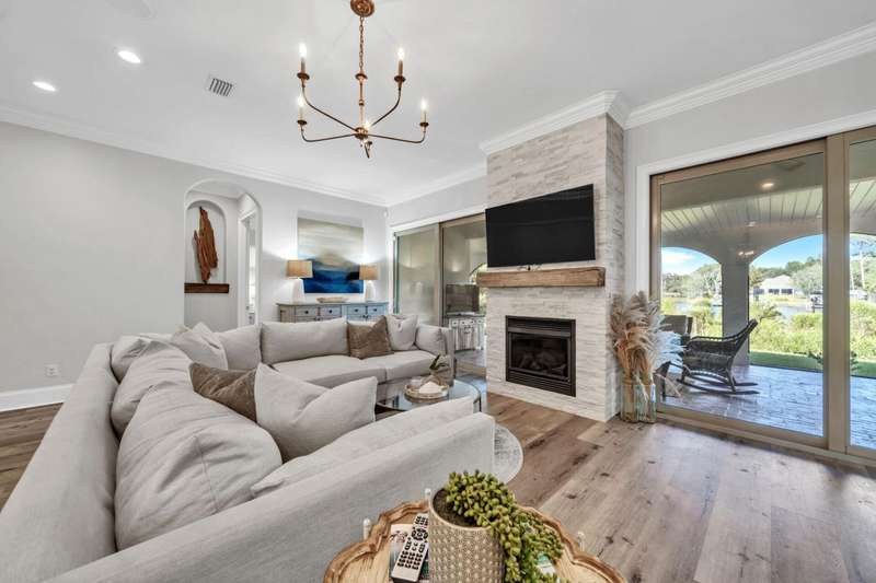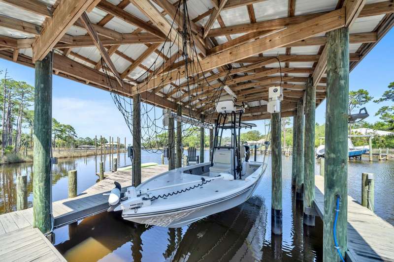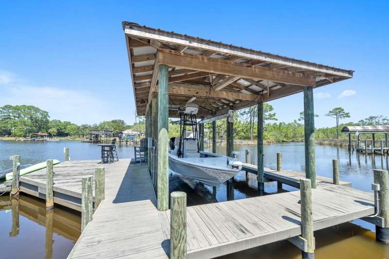 This stunning bayou-front residence in secluded Botany Bayou is the waterfront oasis you have been waiting for! Mature live oaks and lush landscaping lead to this impeccably renovated retreat. High end finishes abound in the chef's kitchen, complete with GE Caf���© appliances and custom tile work. The open floor plan living space includes a fireplace and views of the bayou. A formal dining room accentuated with architectural ceiling detail is also waterfront and features a pocket office. The waterfront primary bedroom boasts amazing views, a spa-like bathroom and his and hers closets. The incredible boat house boasts power, water and upgraded lift along with a sunning/fishing deck. Upstairs you'll find two additional bedrooms, a custom jack-and-jill bathroom and large laundry room.