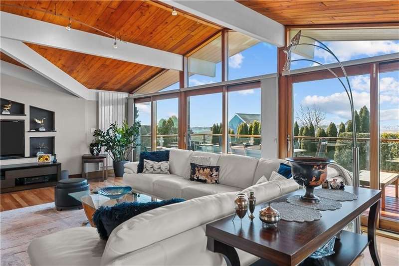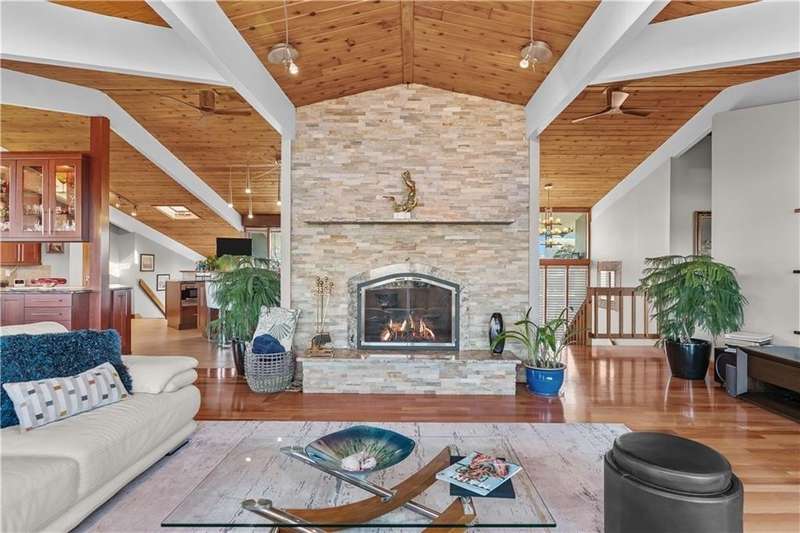 Reintroduced at $2,095,000 This 10 Ocean View residence—just minutes from Newport and nearby beaches—offers a rare blend of relaxed coastal living and gracious entertaining. A striking Acorn Deck House, it merges mid-century post-and-beam architecture with Frank Lloyd Wright–inspired warmth. Natural light floods the interiors through oversized mahogany windows and floor-to-ceiling glass doors in the gabled living room, framing views of the ocean and Newport Bridge. At the heart of the main level, a custom chef’s kitchen complements a serene first-floor primary suite and generous gathering spaces. The lower level extends the lifestyle with two bedrooms, a full kitchen, and a family room that opens directly to landscaped gardens—complete with vegetable beds, flowering borders, and mature plantings. Highlights include: • Two fireplaces (wood-burning and gas) • Five Heat/AC zones • Well-appointed laundry with storage • Oversized two-car garage with ample guest parking • Secondary driveway accommodating vessels up to 30 feet • Outdoor hot tub and pool potential Polished, turnkey, and ready for enjoyment, this property offers a seamless Newport lifestyle in every season. NOTE Cost per sq ft $643.00