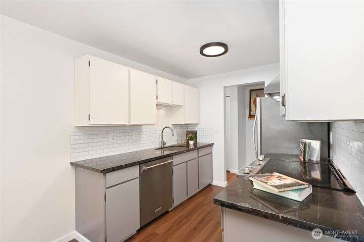 Your own in city hideaway steps away from Seattle’s great offerings. Enjoy the Burke Gilman Trail, Magnuson Park, Thhe expansive and vibrant U-Village and much more this Pied de terre is a must see. A few bus stops away from the Seattle light rail stations, this well run condo community has already undergone much of the big ticket items. One of the great features besides the well manicured grounds, the swimming pool, sauna, community room and work out room is how quiet and peaceful this community is. If you’re downsizing, or if this is a first step into ownership this condo is a great investment with no rental cap. Enjoy in city living without the big city price.