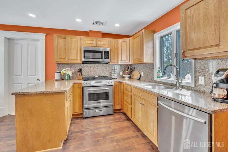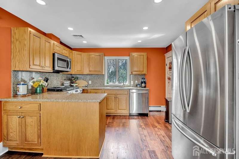 Spacious and full of character Welcome to this beautifully maintained and tastefully updated three-bedroom Colonial This home features generously sized rooms and old-world elegance while offering all the upgrades today's buyers desire. The large eat-in re-designed kitchen comes with Silestone countertops and backsplash, stainless steel appliances, and warm oak cabinetry. Entertain with ease in the expansive family room and formal dining room, both featuring hard wood floors. Other recent upgrades include Andersen windows throughout, new roof(2023), newer siding, newer pavers and a charming front porch, four-zone hot water baseboard heating, and two-zone central air conditioning. Storage will never be an issue with abundant attic and closet space. Additional highlights include an extra-tall 9-ft garage door, a spacious deck perfect for outdoor gatherings, and a fully fenced yard ideal for pets or play. Located in a convenient area with easy access to major highways. Enjoy all that East Brunswick has to offer including excellent schools, parks and recreation, shopping, Crystal Springs Water Park, fabulous community services and much more.