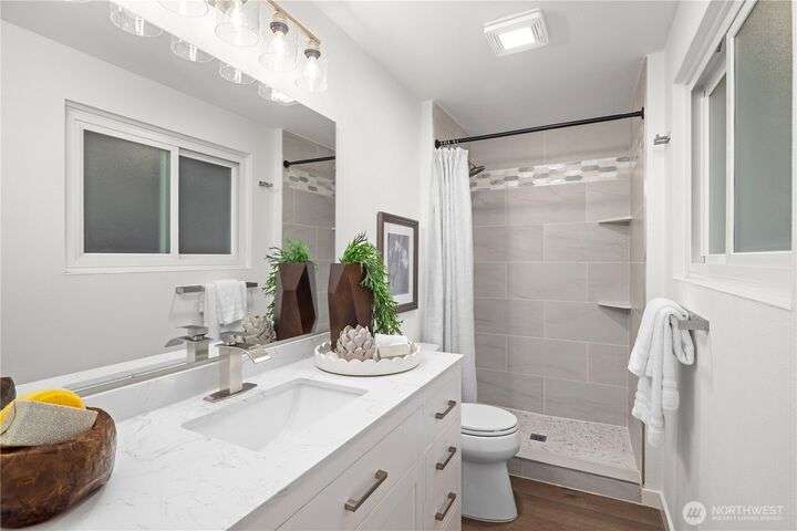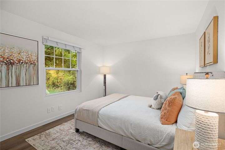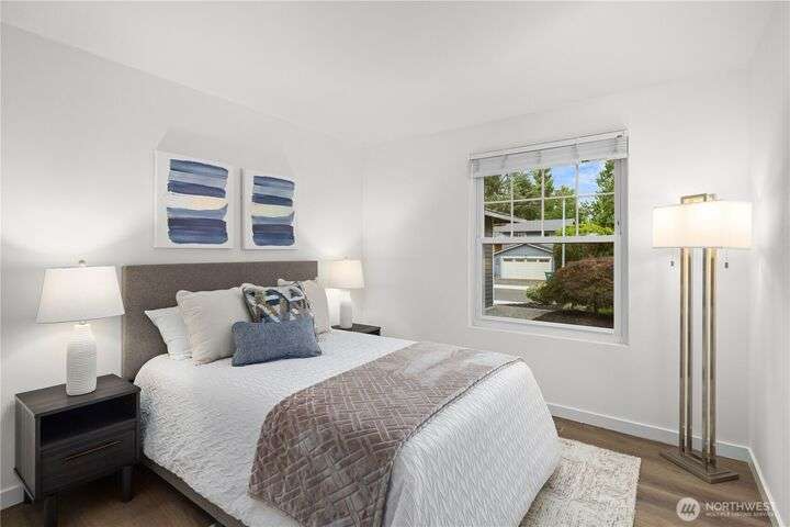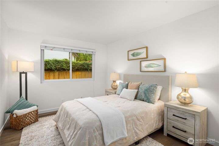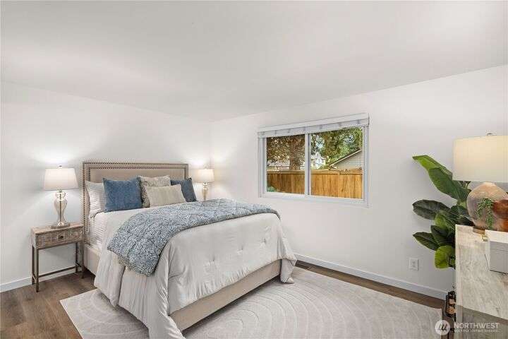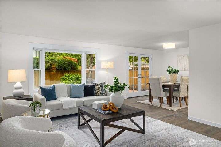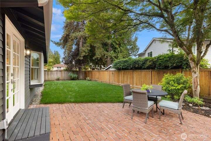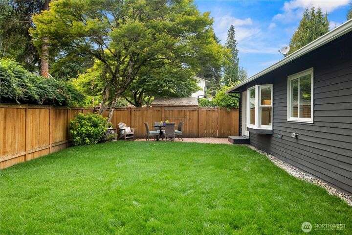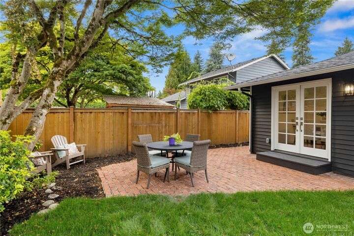 In treasured Lake West, this single-level home shines with a fresh modern spirit, fully remodeled inside and out. A new roof, crisp exterior paint, and lush landscaping create instant curb appeal. Inside, new LVP flooring flows throughout, anchored by a reimagined kitchen with honed granite countertops and all-new appliances. French doors from the dining room open to a sunny fenced backyard with a brick patio—perfect for gatherings under the open sky. The private primary suite offers a serene retreat with a stylish en-suite bath, while A/C ensures comfort year-round. Just steps from Blackberry Park in one of South Lake Sammamish’s most beloved neighborhoods, this is where neighbors become friends and community connection feels like home.