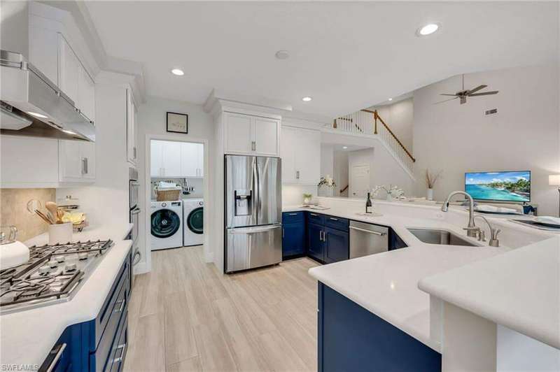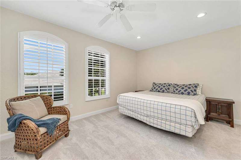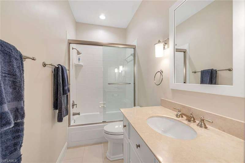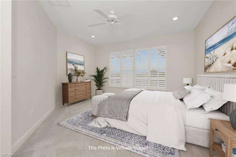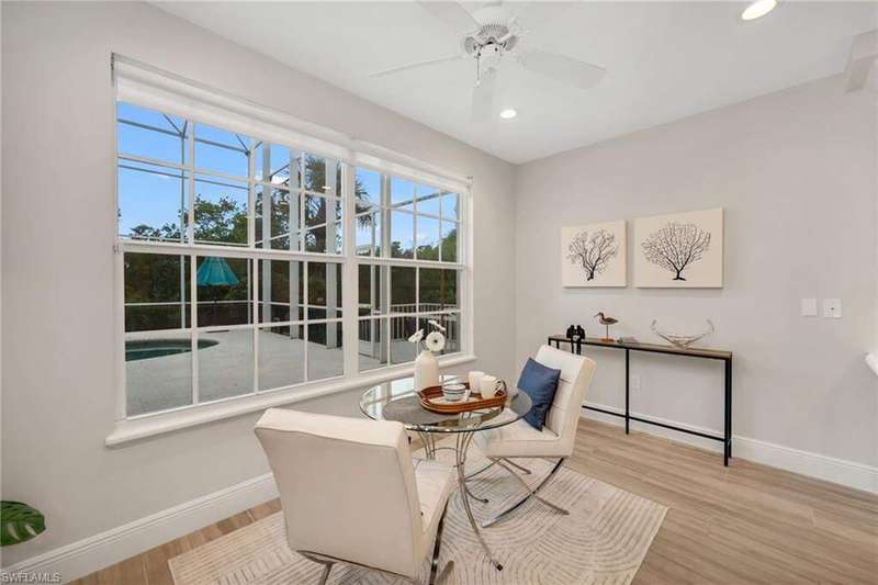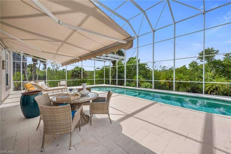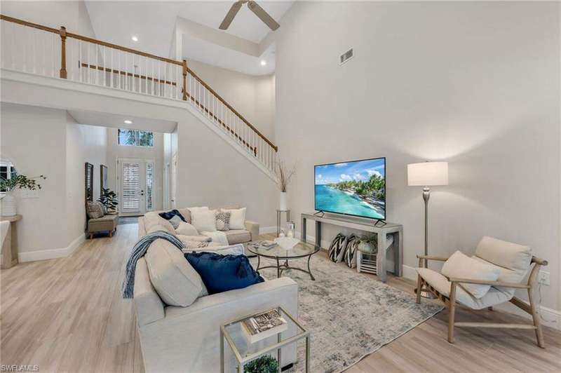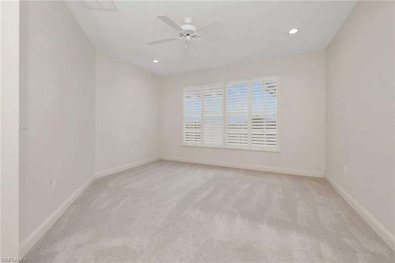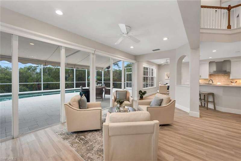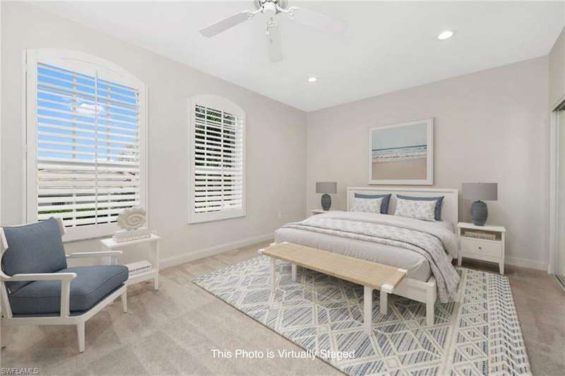 Luxury melds with nature in this rarely-available villa boasting all the modern comforts you desire in Bay Harbor at Bonita Bay. Essential updates include a newer roof, impact glass, kitchen/baths, pool heat pump and Saltwater generator. Soaring ceilings in the foyer, great room, and family room create a sense of grandeur and openness, while the wall of sliders in the rear invites natural light to filter through, bathing every corner in warmth and brightness. The expansive windows enhance the sense of space and provide breathtaking views of the lush preserve beyond, bringing the outdoors in and creating a harmonious connection with nature. A standout feature of this home is its multiple living areas, thoughtfully designed to cater to various lifestyles. Enjoy the great room for gatherings, a cozy family room for relaxation, and a versatile study/den for work or hobbies. Upstairs, a sprawling bonus room offers endless possibilities, whether as a media/recreation area/flex space to suit your needs. The first-floor primary bedroom offers a custom walk-in closet and a lavishly updated ensuite bath. Indulge in the luxurious walk-in shower with multiple shower heads, offering a spa-like experience daily. Upstairs, two generously sized guest rooms rival the primary suite in size and comfort. Each guest room features its own bath, one guest room with en-suite bath, offering unparalleled comfort and privacy for family and guests alike. The expansive screened lanai with a saltwater pool and ample seating was designed to maximize the enjoyment of Bay Harbor's natural surroundings. Retractable awning for extra cover enhances the outdoor experience. Residents also enjoy access to a sparkling community pool and the world-class amenities of Bonita Bay. Don't miss the opportunity to own this villa in Bay Harbor, where elegant design and natural beauty create the perfect place to call home. Home is professionally staged. Staged furniture and accessories are not for sale. Upstairs is Virtually Staged.