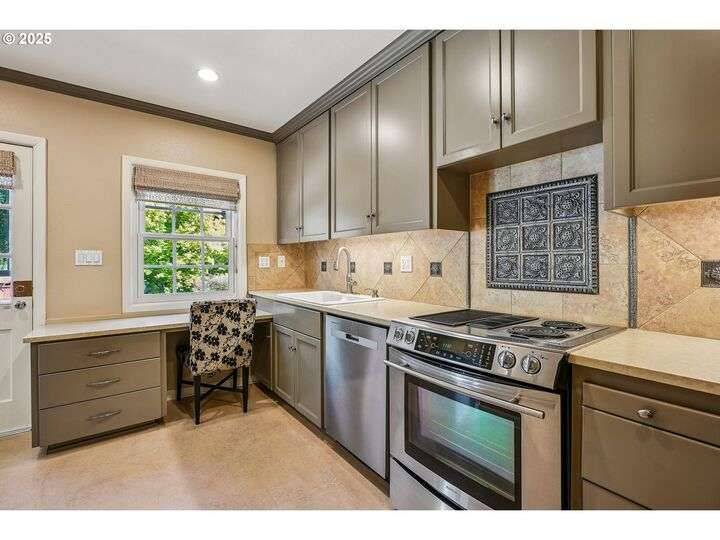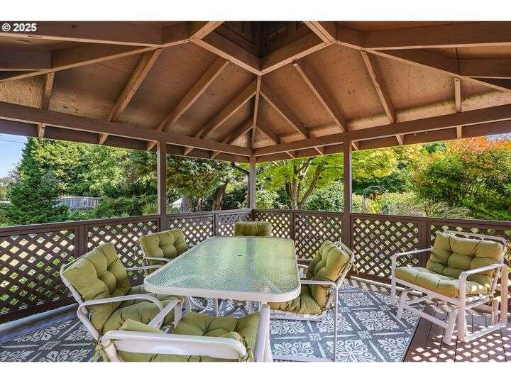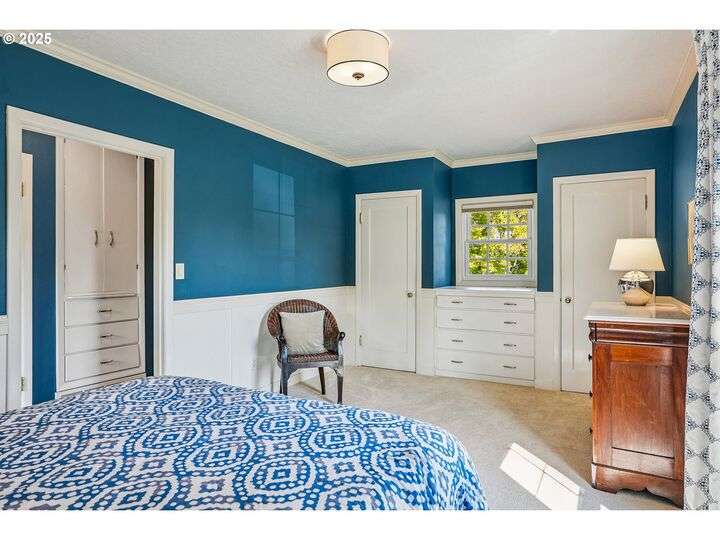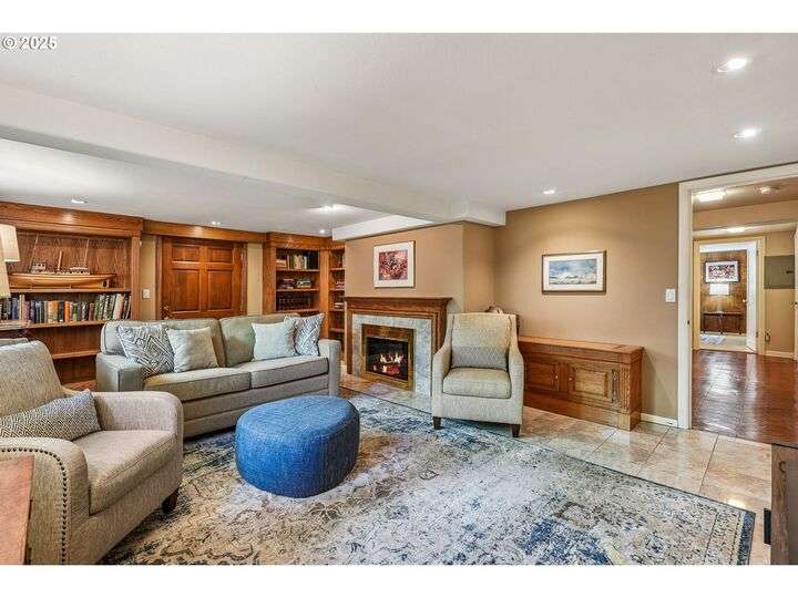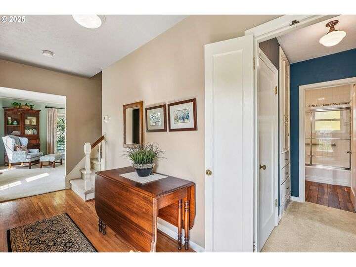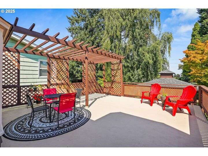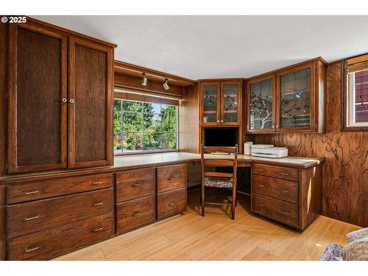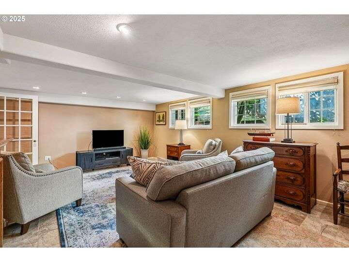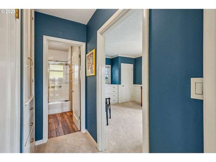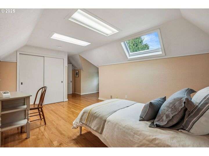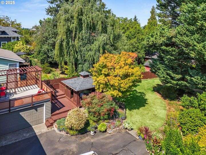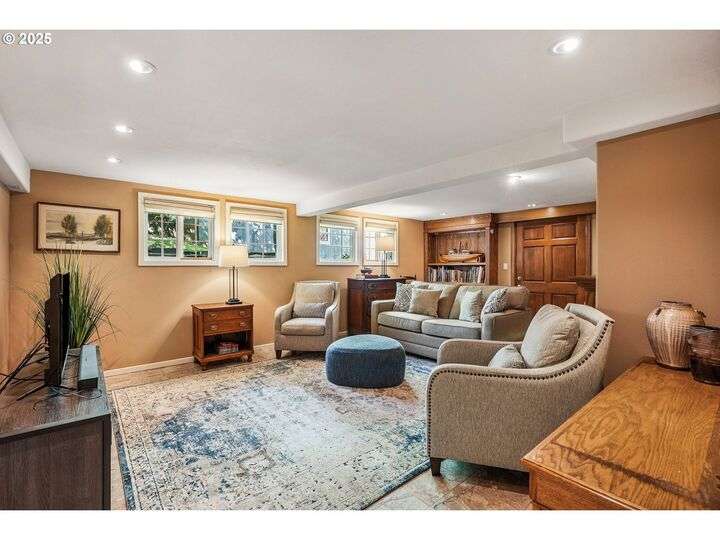 Updated, pristine Cape Cod with a spectacular fenced backyard with plenty of room for gardening & entertaining on the sun deck or in the covered gazebo. Attached garage & plenty of parking in the oversized driveway! The large, open living/dining room is flooded by light with windows on three sides & a gas fireplace surrounded by classic built-ins. Updated kitchen with stainless appliances, tile backsplash, quartz counters & custom cabinets. The elegant kitchen leads to the very large sun deck above the garage. The primary bedroom on the main level has custom wainscoting, several closets & an updated full bath. The cheerful bedroom upstairs is connected to oversized storage space. The finished basement has two separate exterior entrances making it prime for hobbies or potential as an ADU. Enjoy movies in the media room with it's own wood-burning fireplace. The lower level also includes a bedroom with ensuite full bath, desk space, several built-in cabinets & closets. The clean, bright laundry room has a sink and its own access to the exterior. Energy efficient updates include all the windows on the entire house have been replaced with double-pane windows and upgraded rigid spray foam & cellulose insulation. Updated systems include central AC & furnace in 2021, water heater in 2016, roof in 2011. Move-in ready perfection! New Season's, Kennedy School, Beaumont Village, Fernhill Park, Colwood & Rose City golf courses and endless shops, cafes & restaurants in every direction, plus easy access to the airport! [Home Energy Score = 5. HES Report at https://rpt.greenbuildingregistry.com/hes/OR10241252]
