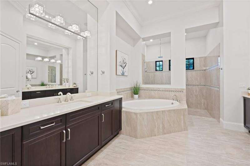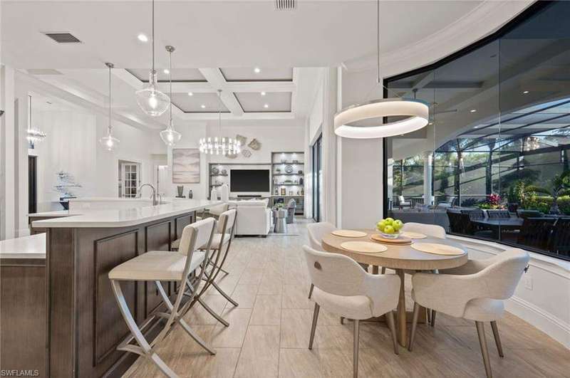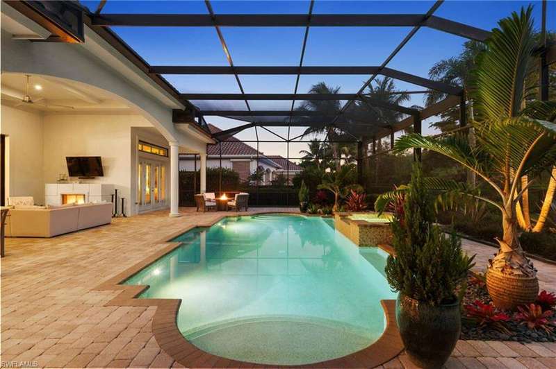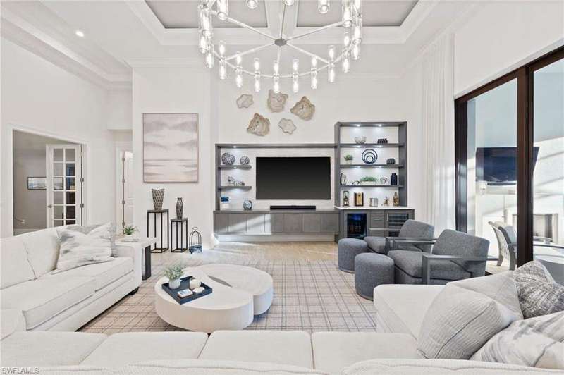 Experience the perfect blend of comfort and style in this newer yet freshly upgraded home thoughtfully inspired by Cardamom Design. Offering the most sought after southwest exposure, the screened lanai features various areas for relaxing, a full outdoor kitchen, built-in fireplace and inviting fire pit plus all-day sun and magnificent evening sunsets. The indoor/outdoor flow delights with a bright, open floor plan and premium finishes end to end- including a gourmet kitchen with upgraded appliances, newer countertops, custom cabinetry and wrap-around island for easy entertaining, a soaring great room with built-in tv wall and wine cooler and clever architectural touches throughout. The primary suite is a private oasis with a spa-like bath and generous walk-in closets while the overall floor plan flawlessly functions to allow privacy for owners and visitors alike. Dine al fresco or step inside to a separate dining room with built-ins or a casual breakfast area. Recently painted inside and out with many upgrades such as an air-conditioned 3-car garage with new built-in storage, Sonos sound system, custom closets and whole house generator, this home captivates at every turn.