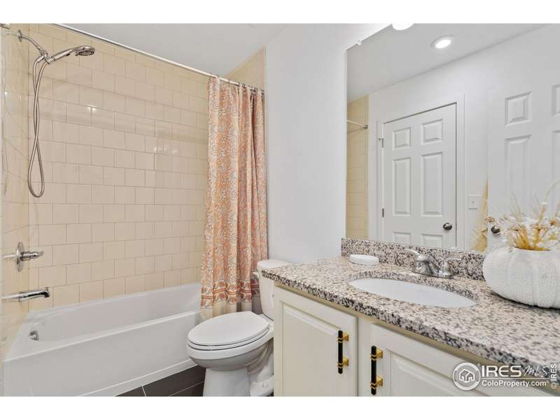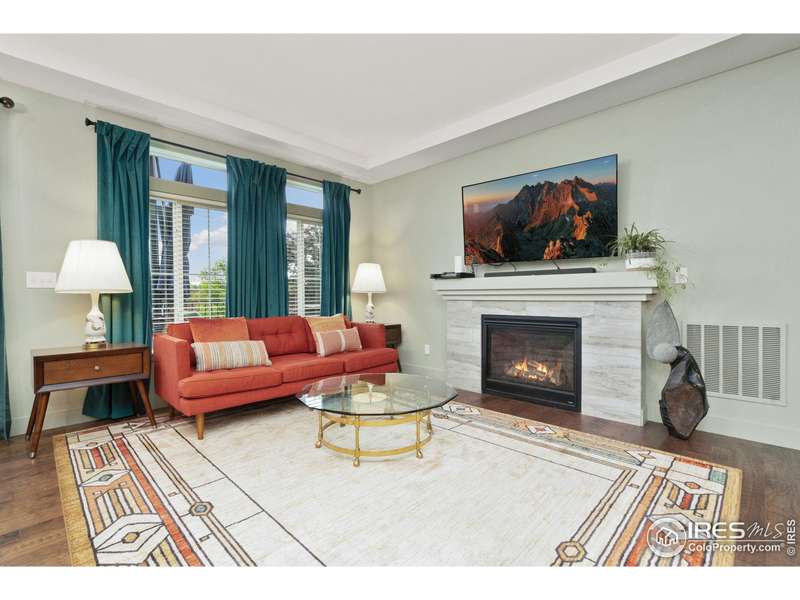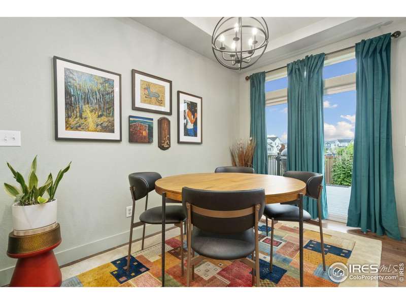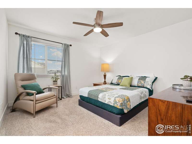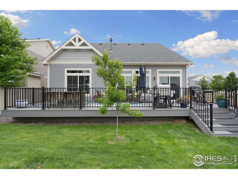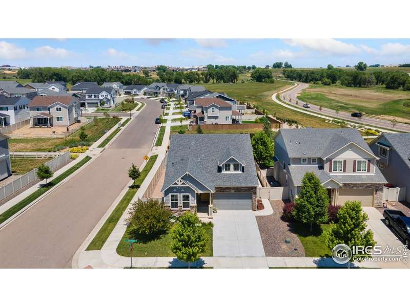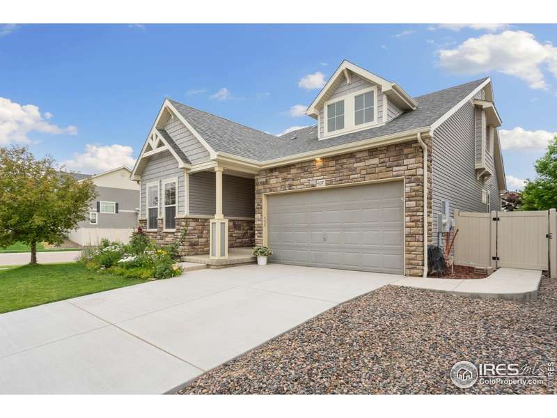 Welcome home to main floor living on a premium corner lot with views of the mountains, trails and open space from the large deck. Now priced at an incredible value! A must-see in person, this well-maintained home has been dramatically designed with the interior of this home full of color, fresh paint, rich wood floors, beautiful light fixtures and designer details. The 3-bedroom home has an open floor plan, offers two bedrooms and laundry on the main level, plus a loft and third bedroom with an ensuite full bath upstairs. All bedrooms have walk-in closets and lots of natural light. Ready for elegant entertaining, the gourmet kitchen includes an upgraded gas range, large island, beautiful backsplash, oversized pantry and opens to the living and dining space with a cozy fireplace. A full, unfinished basement is perfect for your future dreams! The yard is immaculate, lush with flowers and comes complete with a Honeycrisp apple tree and a Reliance Peach tree. Love where you live in the master-planned community of Thompson River Ranch that lies just south of the Promenade Shops at Centerra. This home within a metro district offers amenities like two outdoor pools, a fitness clubhouse, disc golf, playgrounds, scenic trails and year-round community events with NO monthly HOA fee. Come, enjoy the lifestyle and don't miss your opportunity for this beautiful home at an amazing price.