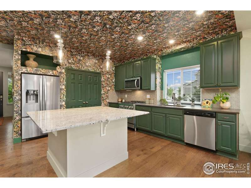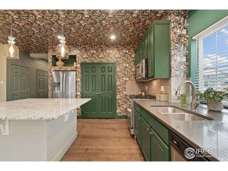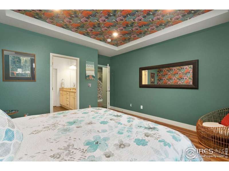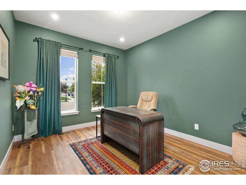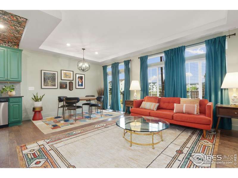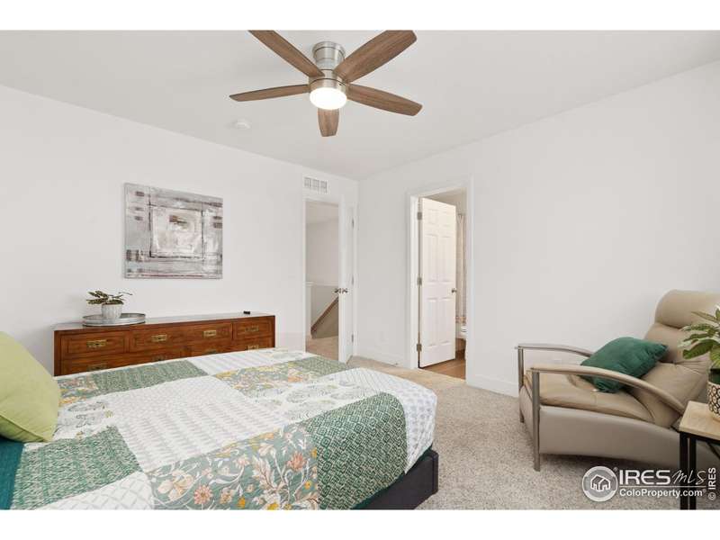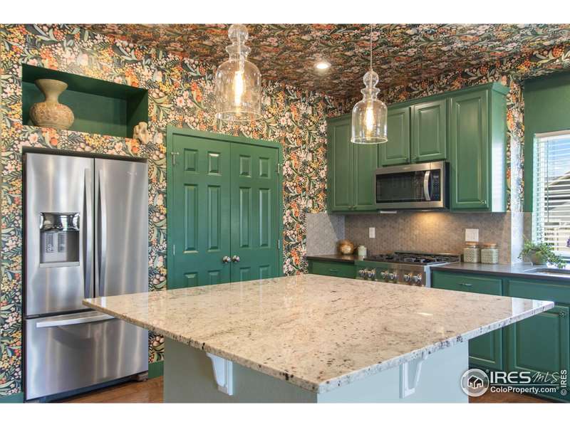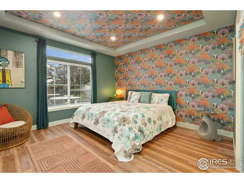 Welcome home to main floor living on a premium corner lot with views of the mountains, trails and open space from the large deck. Now priced at an incredible value! A must-see in person, this well-maintained home has been dramatically designed with the interior of this home full of color, fresh paint, rich wood floors, beautiful light fixtures and designer details. The 3-bedroom home has an open floor plan, offers two bedrooms and laundry on the main level, plus a loft and third bedroom with an ensuite full bath upstairs. All bedrooms have walk-in closets and lots of natural light. Ready for elegant entertaining, the gourmet kitchen includes an upgraded gas range, large island, beautiful backsplash, oversized pantry and opens to the living and dining space with a cozy fireplace. A full, unfinished basement is perfect for your future dreams! The yard is immaculate, lush with flowers and comes complete with a Honeycrisp apple tree and a Reliance Peach tree. Love where you live in the master-planned community of Thompson River Ranch that lies just south of the Promenade Shops at Centerra. This home within a metro district offers amenities like two outdoor pools, a fitness clubhouse, disc golf, playgrounds, scenic trails and year-round community events with NO monthly HOA fee. Come, enjoy the lifestyle and don't miss your opportunity for this beautiful home at an amazing price.