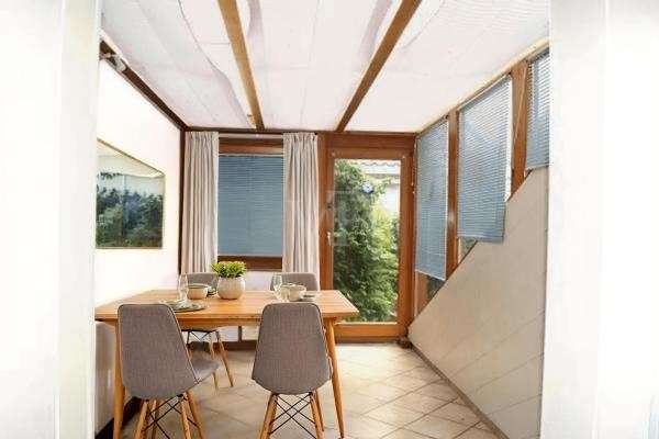This special property presents itself as a detached house with a living space of around 142 m², situated on a plot of around 444 m². The house, originally built in 1938, has been continuously renovated and modernized to improve living comfort. Nevertheless, further modernization is recommended in order to exploit the property's full potential. The house has five rooms, including four bedrooms and two bathrooms. The spacious living-dining area offers a special charm, providing ample space for family activities and convivial evenings. The kitchen with adjoining conservatory, which was added in 1995, creates a bright and inviting atmosphere that enriches everyday life. A remarkable aspect of the house is the clever use of space over the years. An additional bedroom was added in 1977, expanding the available space. The property was once used for multi-generational living, which underlines the flexibility of the room layout. The features of the house include a carport, which was built in 2003, as well as an additional parking space for another vehicle. A useful detail is the refrigerated cellar room, which is ideal for storing food. For gardening enthusiasts, there is a shed that provides ample storage space for garden tools. Outside, a covered terrace invites you to enjoy the peaceful surroundings. The small garden area offers opportunities for individual design and relaxation. The location of the house means that shopping facilities are within walking distance, making everyday life more convenient. The heating system was modernized in 2023 and replaced by a Weishaupt central heating system to ensure an efficient heat supply. This update is part of the numerous measures that have helped to maintain and improve the property. Overall, this house is characterized by its functional yet cosy character. It offers a wide range of possible uses thanks to its well thought-out room layout and its location in a quiet residential area. This property is ideal for families or couples looking for a home in which they can realize their individual living ideas. Interested parties are invited to arrange a viewing to gain a personal impression of this detached house and experience the potential it offers for themselves.