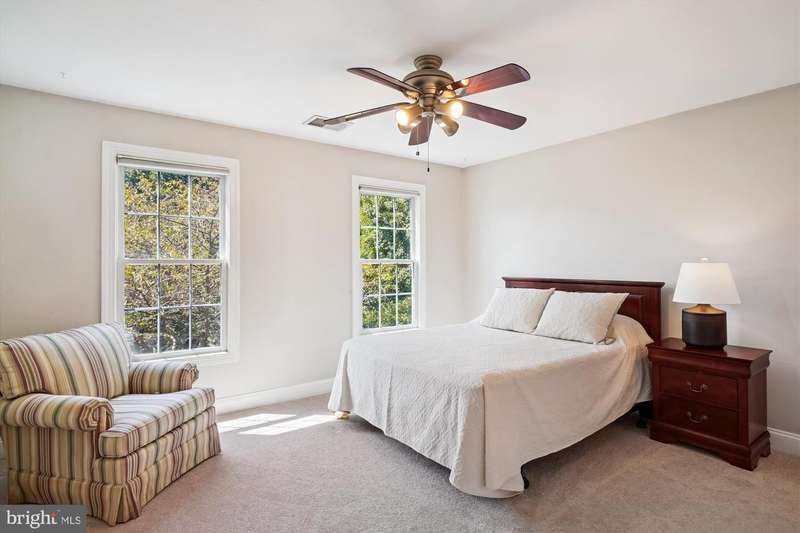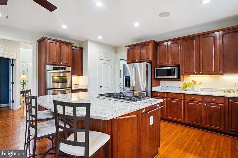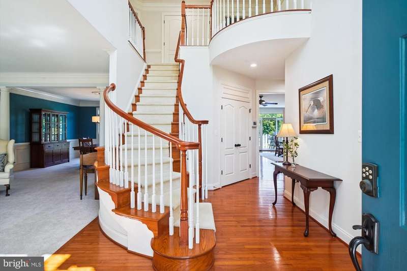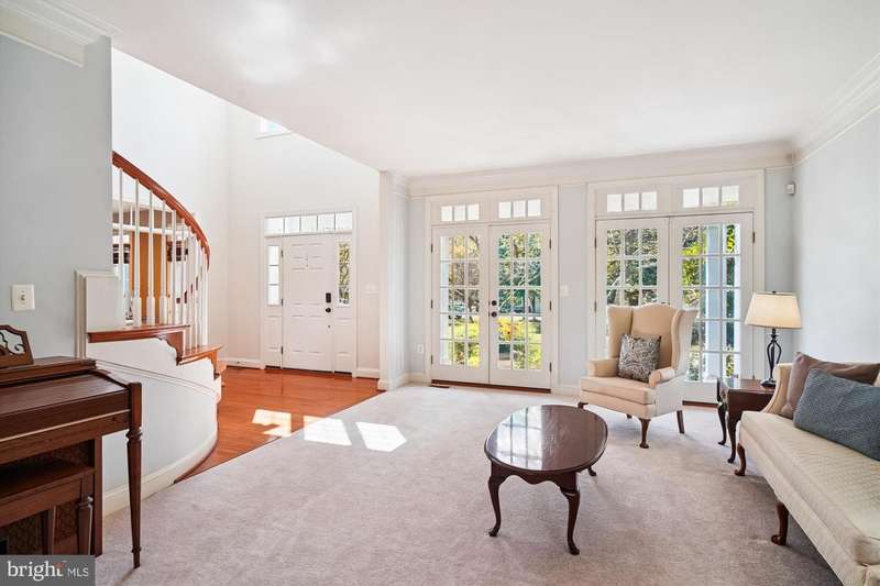 At the end of a quiet cul-de-sac in sought-after Brookefield, one of the area's most peaceful and established neighborhoods, this 5-bedroom, 4 full and 2 half bath Colonial sits on 2 private acres backing to parkland, offering a rare blend of serenity, space, and convenience. With over 5,500 finished square feet, the home welcomes you with a dramatic two-story foyer and a sweeping curved staircase that sets a grand yet inviting tone. The main level features a sunny formal living room, a spacious dining room with crown molding, and a show-stopping two-story family room anchored by a floor-to-ceiling stone fireplace and pastoral views. The open kitchen, outfitted with stainless steel appliances, granite counters, a large island with seating, and a walk-in pantry, flows easily to the breakfast nook and outdoor entertaining spaces. Upstairs, the oversized primary suite is a true retreat, complete with a sitting area, two large walk-in closets, and a spa-inspired bath with soaking tub and dual vanities. Two additional bedrooms share a thoughtfully designed Jack-and-Jill bath, while the fourth upstairs bedroom enjoys the privacy of its own ensuite bathroom, ideal for guests or older children. The fully finished walk-out lower level includes a generous recreation area, a second kitchen, a legal bedroom with ensuite full bath, and an additional half bath, perfect for in-laws, an au pair, or guests needing a bit more independence. There's also a large utility/storage room with a second washer and dryer and ample space for hobbies, workouts, or organization. Outdoor living is equally impressive, with a flagstone patio overlooking protected woods and Rock Creek Stream Valley Park. The attached three-car garage and extended driveway provide ample parking, while the lot's placement offers privacy and stunning views in every season. Located within minutes of commuter routes, parks, and local attractions, this home is a peaceful sanctuary with everything you need close by. Welcome home.