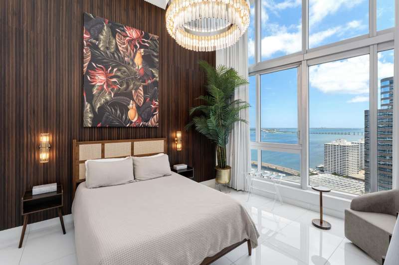 Experience the pinnacle of Miami luxury in this Icon Tower residence in the heart of Brickell. Rated a perfect 5 stars and awarded a guest favorite as one of the most loved homes on AirBnb with floor-to-ceiling windows frame skyline and bay views, while interiors are designed around the dream that was vintage Miami--blending timeless Art Deco elegance with modern sophistication. Features include a custom hand-cut tub, hand-blown crystal chandeliers, and access to resort-style amenities shared with the W Hotel. Steps from chic dining, nightlife, and designer shopping. Set on the 28th floor of The Icon Brickell, this unit boasts impressive high floor-to-ceiling windows, offering two private balconies showcasing partial water views and stunning cityscapes. This is a MUST SEE!!
