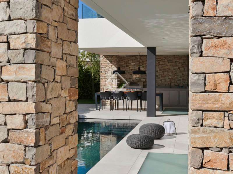 Discover this impressive villa on the Costa Dorada of Tarragona, in the charming town of Cambrils. Its unique design combines the elegance of modern black and white lines with the warmth of natural stone and oak wood, creating a perfect harmony between modernity and nature. This four-story house offers a sophisticated and cozy atmosphere. From its main façade you will enjoy views of the Mediterranean, while at the back you will find an emblematic opening in a natural stone wall. The architectural strategy seeks a perfect balance between the exterior architecture and the interior atmosphere. In addition, it has home automation and energy efficiency technologies, including photovoltaic panels that generate energy. With 3 bedrooms and a study, 4 bathrooms, gym and storage room, hot/cold pump heating and access adapted for people with reduced mobility, this villa is the ideal place to enjoy life on the Costa Dorada.