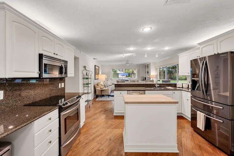 Spectacular find! Beautifully updated & meticulously maintained 4-bedroom 3-bath one level home. Located in the SAFE FEMA "X" zone. Very Large .42 Acre lot on Crayton Road. Just south of Mooringline Dr. Old growth trees and native plants encompass your private retreat. Hidden private respite in the heart of Naples. Over 2400 sq ft of light & bright, comfortable, quiet, living. Updated kitchen, spacious living room, family room, den, 3 guest bedrooms, 3 full baths, with spacious master suite. Tranquil covered outdoor pool, deck, and entertainment area with stunning park-like yard. Refresh in nature's beauty. Plenty of room for your pets to roam. Harvest your mature Mango & Lemon trees. One of the few properties in The Moorings with no overhead power lines. Centrally located with short stroll to Moorings Beach Park for stunning sunsets, a dip in the Gulf, or picnic lunch. Minutes from Old Naples, Venetian Village, Waterside shops, Mercato or Artis-Naples. Dreams do come true - Bring your best offer!