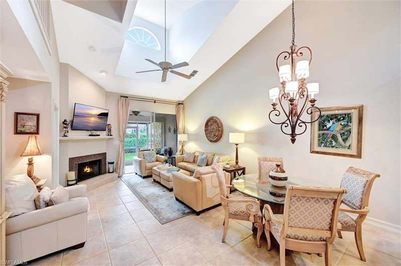 Best buy and rarely available. Move-in-ready villa in the desirable Villages of Monterey! This spacious 2-story home offers 3 bedrooms + den, 2.5 baths, a loft, and 1-car garage with lake and landscaped views from the screened lanai. Located on a quiet cul-de-sac, it s just a short walk to the renovated clubhouse and resort-style pool. Enjoy 1,830 sq. ft. of living space with vaulted ceilings, tile flooring, and a cozy fireplace. The updated kitchen features newer stainless-steel appliances, ample cabinetry, plenty of prep space, and two breakfast bars perfect for casual meals or entertaining. Step outside to your private courtyard patio, ideal for morning coffee, reading, dining al fresco, or gardening. The elegant bathrooms offer walk-in showers and custom cabinetry. The upstairs loft works well as a home office, guest room, or play area offering flexible space for family and visitors. Monterey is centrally located off Orange Blossom Dr. near Airport-Pulling and Goodlette-Frank, clos