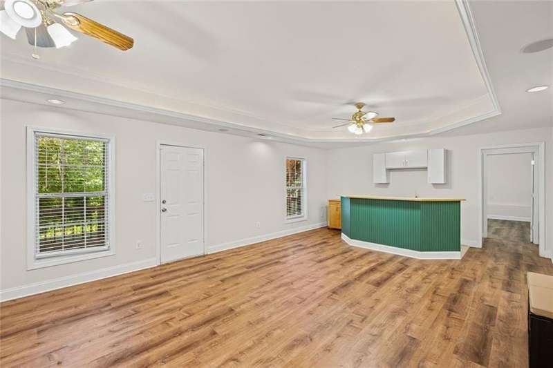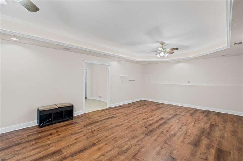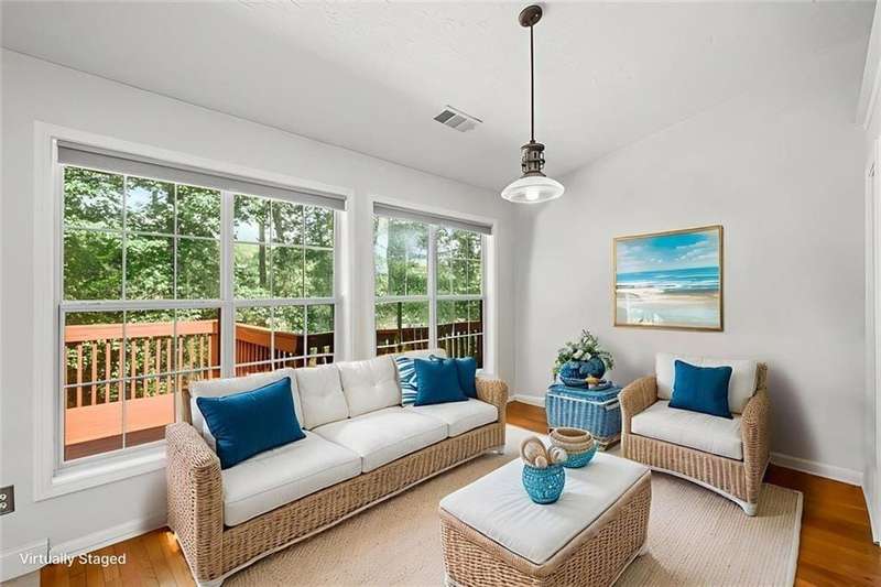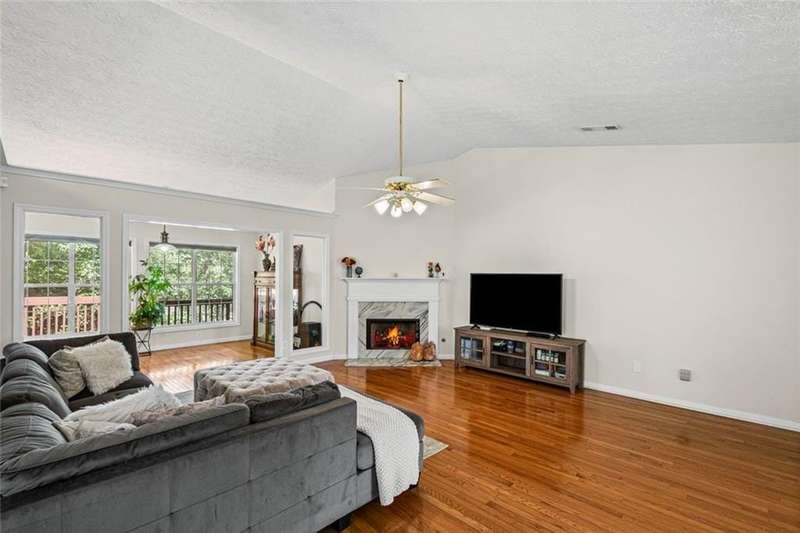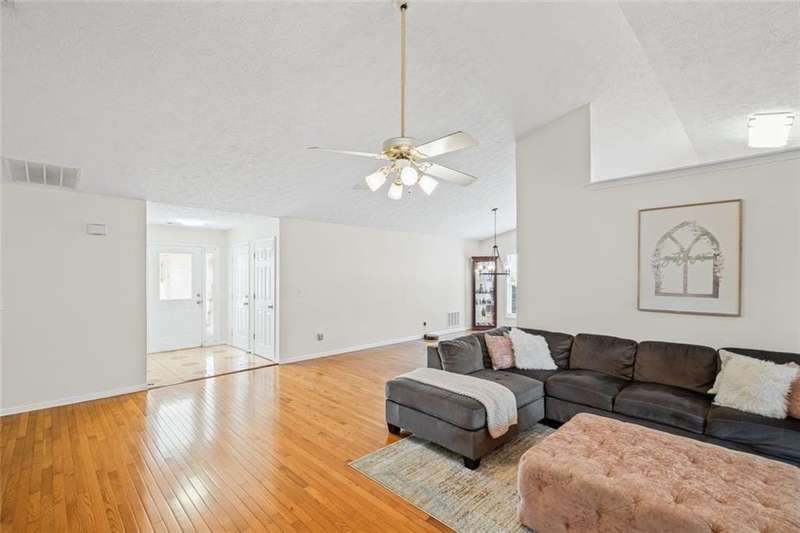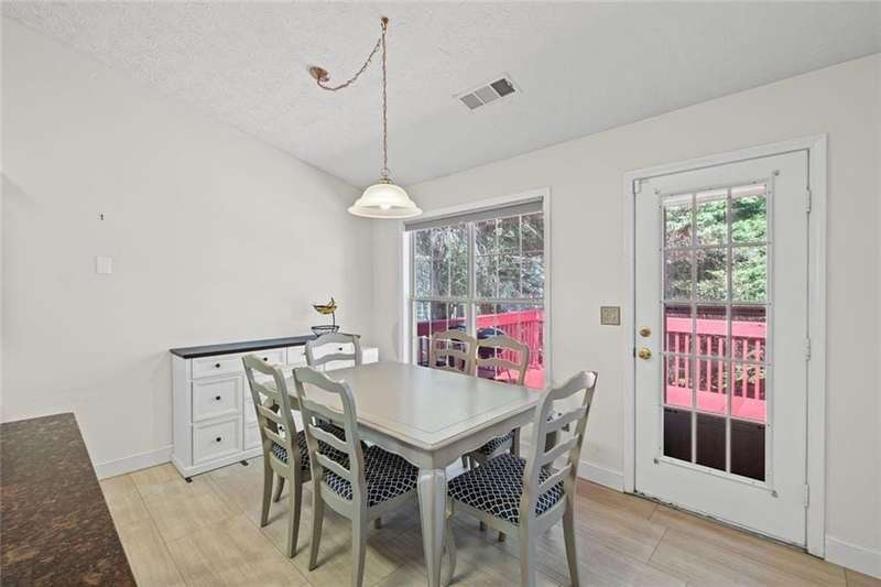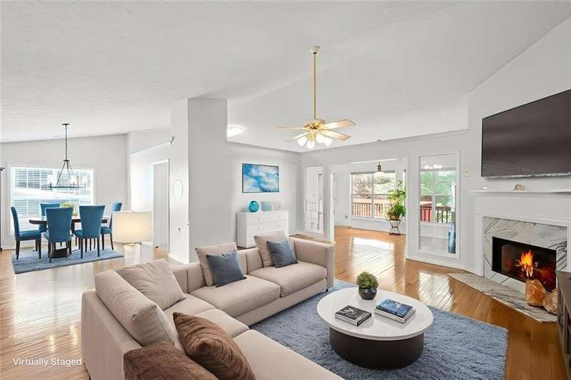 Situated in the highly sought-after Richland community in Suwanee, this exceptional ranch home with a full finished daylight basement, offers both elegance and comfort in a setting renowned for its resort-style amenities, including three picturesque lakes, two swimming pools, a splash pad, tennis and pickleball courts, a clubhouse, playground, fire pit, and scenic nature trails. Conveniently located within the top-ranked Collins Hill High School District and providing easy access to I-85, Suwanee Town Center, premier shopping, dining, and entertainment, this home presents an unparalleled lifestyle opportunity. The main level offers vaulted ceilings, abundant natural light, solid hardwood flooring, and a large welcoming chef's kitchen with soaring vaulted ceilings, stainless steel appliances, large island, eat in breakfast area and generous cabinetryperfectly designed for hosting and gathering. The open floor plan flows seamlessly between the expansive living room with a fireplace for enjoyment, kitchen, formal dining room/flex room, sunroom, three generously sized bedrooms including the owners suite, as well at 2 full bathrooms/double vanities. The terrace level extends the homes versatility with two additional large bedrooms, a full bath, another oversized living room, and new LVT flooring throughout, providing an ideal setting for recreation, entertaining, or private guest/in-law accommodations. The home is complete with a large upper deck for grilling and gathering, as well as a covered lower deck for enjoyment. Perfectly positioned on an oversized wooded lot within a vibrant and established Suwanee community, this residence combines refined living, thoughtful design, and exceptional area/amenities for everyday enjoyment, relaxation and memorable gatherings alike.