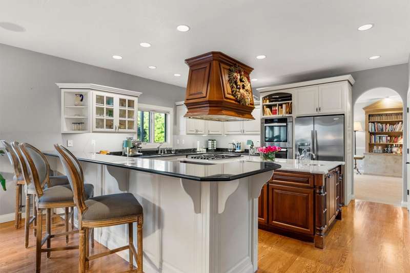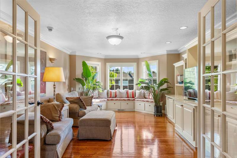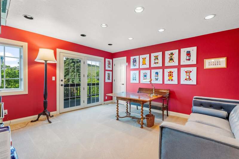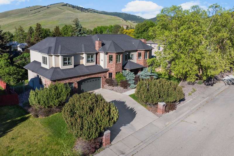 A traditional American 2 story brick & siding home set in the well-regarded and tranquil Fairviews area; conveniently located close to a neighborhood restaurant surrounded by the Highlands Golf Course. Discover the perfect blend of comfort and functionality in this stunning character-rich home close to an abundance of all season walking, hiking & biking trails, offering immediate access to acres of public land, making it an outdoor enthusiast's playground! Ease of living with low-maintenance mature landscaping featuring both: a lawn and a versatile 25ft x 40ft concrete sports pad. Experience quality craftsmanship with modern amenities to create an exceptionally comfortable living experience. Key Elements: 4 bedrooms, 4.5 bathrooms, 4 gas fireplaces, 4 independent zones for heating and cooling, expansive heated garage for 3+ vehicles featuring integrated sound system plus workshop and built-in cabinetry featuring 10.6ft ceilings. Built-in sound system throughout ground floor, master suite and garage. BROAN Radio and whole-home intercom system including the garage and deck. Light abounds courtesy of floor to ceiling bow windows. Original red oak hard wood floors, and ground floor flooring made from natural sturdy agave-plant fibers, low maintenance and environmentally friendly. Well appointed upon entry is a functional den including a built-in library with gas fireplace. The kitchen is a chef's dream, featuring high-end stainless steel appliances, granite countertops, a large island in cherry-wood with prep sink and red-oak flooring. An expansive bar and lounge space for all to join in and enjoy the culinary experience, this inviting area showcases a gas fireplace framed by a custom built-in cabinetry complete with an integrated TV screen and surround sound system. Take your dining to the adjacent dining room or outside to the private backyard oasis. Heading up the curved staircase to the second floor, you will find 4 spacious bedrooms, all with abundant light, views, and charm. One of the bedrooms would alternatively serve as a home gym or additional hobby/work space. Adjacent to the bedrooms find a perfectly placed additional living room for lounging, with a built in cabinetry accommodating an integrated TV screen for movie nights, reading, and more! At the end of the corridor is a surprising primary suite sanctuary. Lavishly appointed with 2 bathrooms (including radiant floor heat) and comfort zones plus 2 walk-in closets, perfectly tucked away from the main living areas. Featuring a separate lounge area (or work space), including a triple-sided gas fireplace seamlessly connecting the bedroom and private lounge area. Wake up to the inspiring views of Mount Sentinel, framed by a private balcony to enjoy the beautiful sunrises and golden hour sunsets.