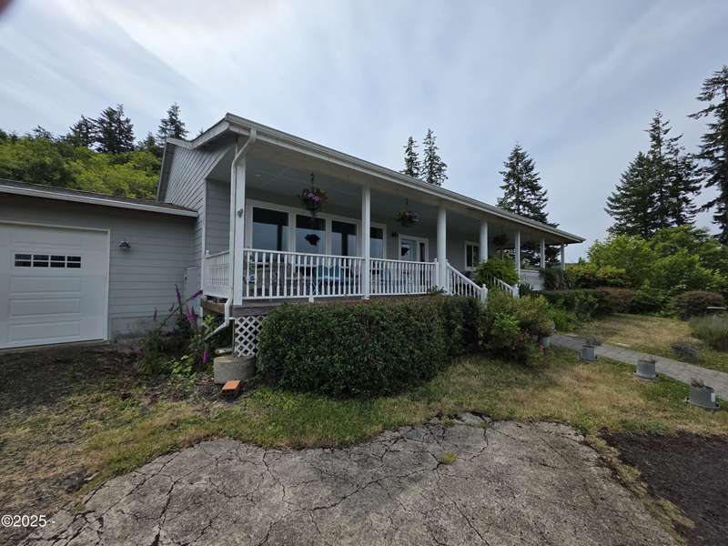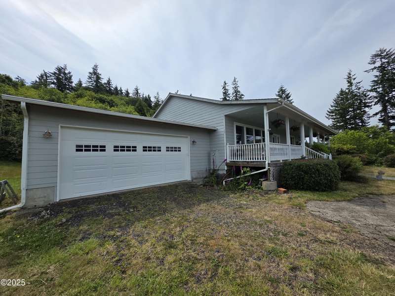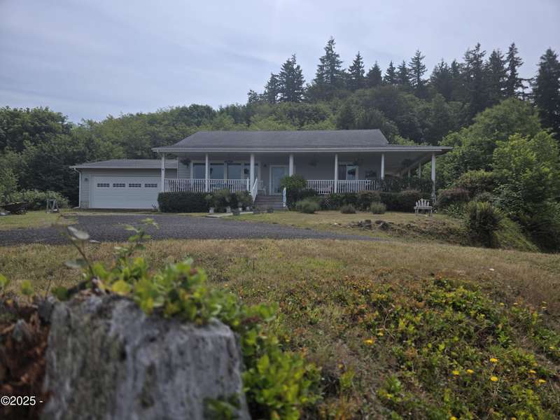 Welcome to your dream retreat above the Yaquina River! This beautiful 2015-built home sits on over 7 acres of private hilltop property, offering panoramic views of the river and surrounding forested landscape. Tucked away in peace and quiet, yet close to coastal conveniences, this one-of-a-kind property combines comfort, function, and potential. The main level features 1,320 sq ft of finished living space with a well-designed floor plan that includes spacious bedrooms, an open-concept living and dining area, and large windows that bring the views right into your home. The light-filled kitchen opens onto a covered porch where you can enjoy morning coffee, watch abundant wildlife, or simply take in the incredible scenery. Large main level laundry room. The 1,320 sq. ft. lower level is already framed in, with plumbing, electrical, and insulation in place. Add drywall and flooring, and you're ready to double your living space perfect for multigenerational living, a guest suite, or income potential. Also included is an extra-large shop complete with two garage doors, full electrical setup, and a finished bathroom. Ideal for projects, storage, RVs, or running a home-based business. Whether you're looking for a private homestead, hobby farm, or just a serene getaway with tons of usable space. This property has it all. A rare find. Schedule your tour today!