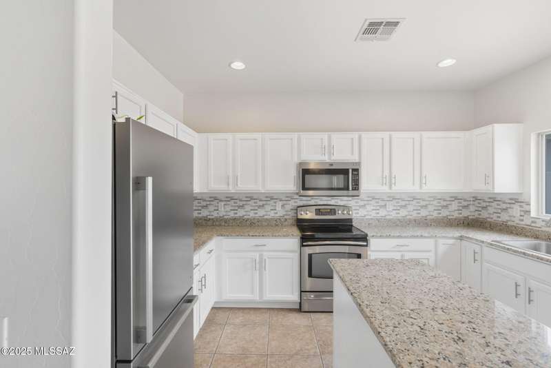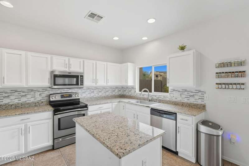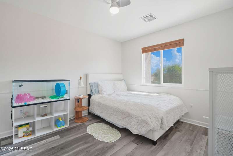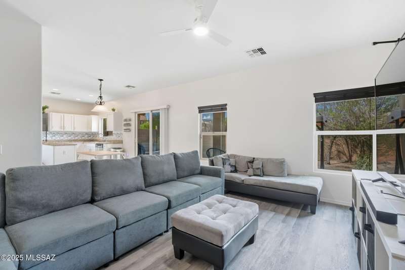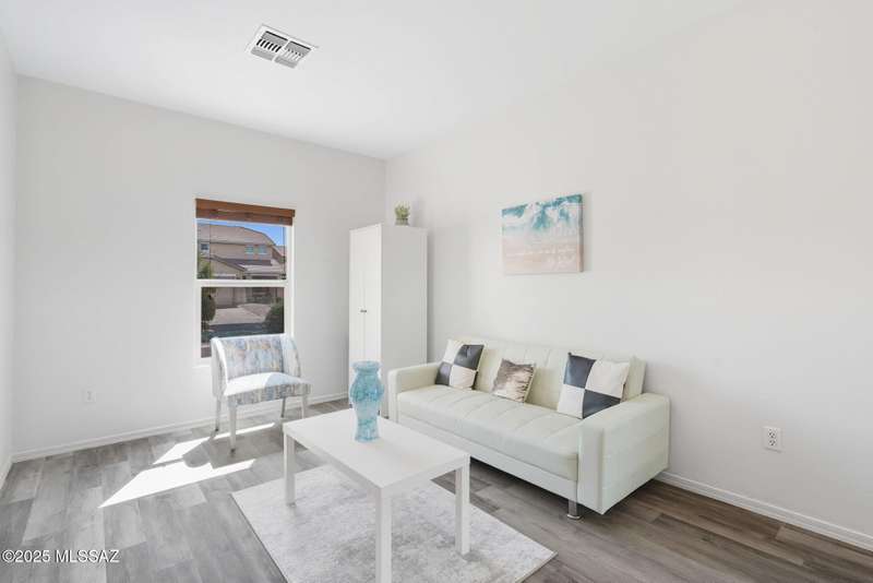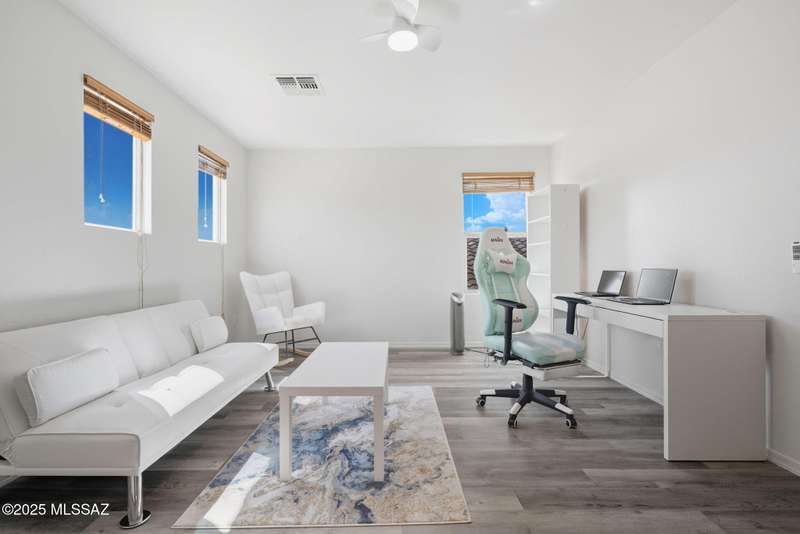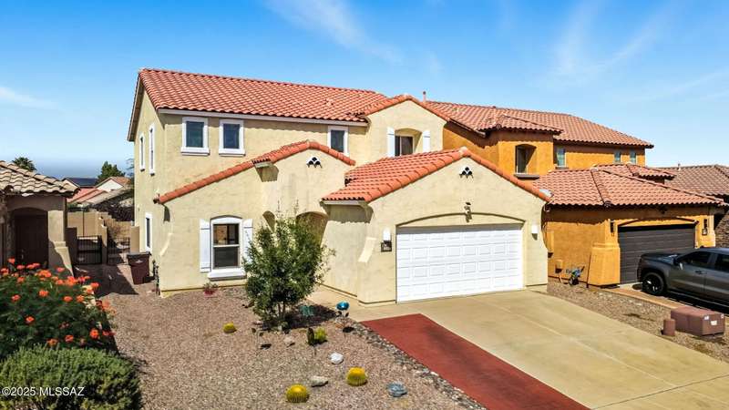 Come see this beautiful 4bd, 3bd, home in the Rancho Sahuarita community, featuring an upstairs loft and a full bedroom and bathroom on the main floor. Interior updates include newer laminate flooring throughout and newer remote-controlled ceiling fans in all rooms. The kitchen offers granite countertops, a newer stainless steel refrigerator, and dishwasher. Samsung front-load washer and dryer are included. A newer water heater has also been installed. Wired for convenience, the home features integrated high-speed internet (hardwired) and is cable/Dish ready in all bedrooms, the living room, and the loft. Ring camera system ready front door unit is hardwired, with two additional solar-powered cameras included.Exterior features include an extended brick paver driveway and a covered patio